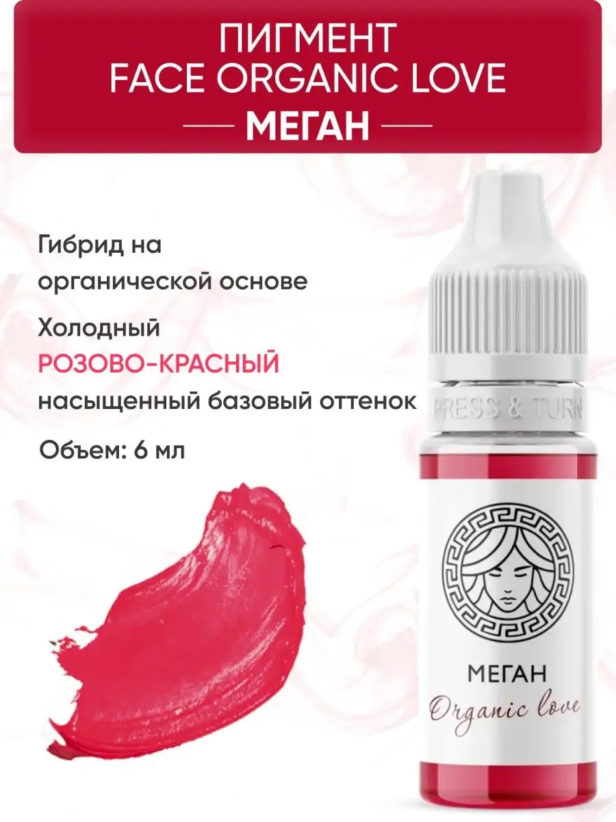 Пигменты Organic Love для перманентного макияжа губ. Гибрид на органической основе. Холодный розово-красный насыщенный базовый оттенок.
