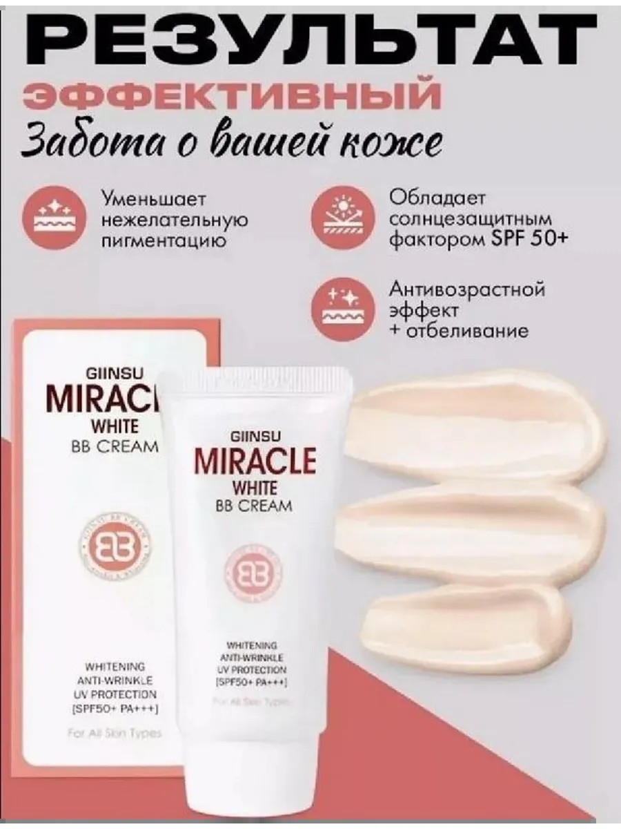 Крем для лица Giinsu Miracle White BB cream – увлажняющий, антивозрастной крем для лица, для всех типов кожи. Это косметическое средство для лица, для ежедневного ухода. Преимуществом является то, что в его состав входит: натуральные компоненты, витаминный комплекс А, В, Е, U. Он бережно ухаживает за кожей лица, придавая ей упругость и эластичность, увлажняет и защищает ее от свободных радикалов, выравнивает тон, успокаивает от раздражения и защищает от ультрафиолетовых лучей, предотвращает образование морщин. Его тройное действие на кожу лица, длится до 12 часов.