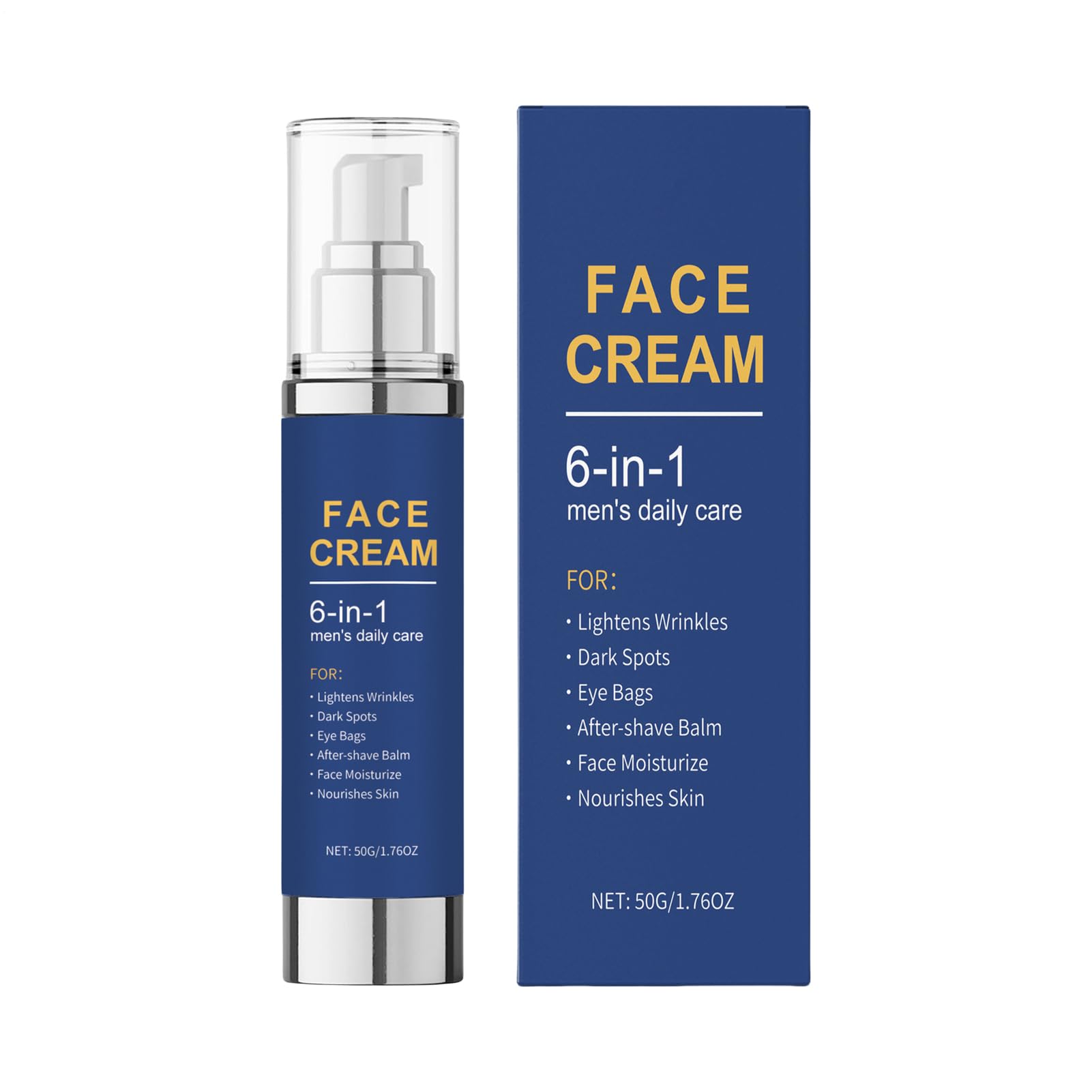 Designed to be light and nourishing, this moisturizer enhances the skincare routine for mature skin in men. It reduces swelling and stimulates areas affected by dark circles. After cleansing or shaving, it provides long-lasting moisture and is particularly beneficial when used before bedtime. This facial cream is an excellent choice for men looking for simple and effective skin care. It supports the natural regeneration of the skin and ensures a pleasant skin feeling in the morning. Specifications: Name: Men's Face Cream Capacity: 50g. Contents of the delivery: 1 x Moisturizing Face Cream. Note: Due to the light and screen setting difference, the item's color may be slightly different from the pictures. Please allow 1-2cm error due to manual measurement. SAFETY WARNING Not applicablePractical pump system: thanks to the precise dosing system, the right amount of product can be removed with just one push. This way, waste is avoided and hygiene is guaranteed. The light paste is easily mouldable, can be easily applied and retracted without sticking. This way it meets daily care needs. Eye Care: Specially designed for the sensitive skin around the eyes, the gently absorbent formula relieves swelling and dullness, reduces wrinkles and improves skin radiance. This makes the eyes look refreshed and vital and more youthful. Soothing care: the innovative combination of soothing factors quickly relieves skin complaints after shaving, relieves redness and burning, prevents enlarged pores and keratin formation, maintains the balance of the skin barrier and ensures a more pleasant and stress-free shave. Deep regeneration: thanks to skin-friendly technology, combined with natural moisture factors and nourishing essences, the formula quickly penetrates the skin, hydrates and forms a long-lasting, water-binding film. Feelings of tension are permanently reduced and the face remains hydrated and smooth for a long time. Firming and revitalizing: the formula specially tailored to the needs of male skin contains numerous active ingredients, effectively smoothes fine lines and wrinkles, reduces dryness and roughness, deeply moisturizes and improves skin elasticity, contributes to the restoration of firmer contours and gives the skin a youthful and healthy appearance.Gezichtscrème, vochtinbrengende crème, 50 g, 6-in-1 gezichtslotion voor mannen, verzorging tegen wallen Ontworpen om licht en voedend te zijn, verbetert deze vochtinbrengende crème de huidverzorgingsroutine voor de rijpe huid bij mannen. Het vermindert zwellingen en stimuleert gebieden die door donkere kringen worden aangetast. Na het reinigen of scheren biedt het langdurige vocht en is bijzonder voordelig bij gebruik voor het slapengaan. Deze gezichtscrème is een uitstekende keuze voor mannen die op zoek zijn naar een eenvoudige en effectieve huidverzorging. Het ondersteunt de natuurlijke regeneratie van de huid en zorgt voor een aangenaam huidgevoel in de ochtend. Specificaties: Naam: Gezichtscrème voor heren Capaciteit: 50 g. Inhoud van de levering: 1 x vochtinbrengende gezichtscrème. Opmerking: Vanwege het verschil in licht- en beeldscherminstellingen kan de kleur van het artikel enigszins afwijken van de afbeeldingen. Houd rekening met een foutmarge van 1-2 cm door handmatige meting. VEILIGHEIDSWAARSCHUWING Niet van toepassingPraktisch pompsysteem: dankzij het nauwkeurige doseersysteem kan met slechts één druk de juiste hoeveelheid product worden verwijderd. Zo wordt verspilling vermeden en wordt de hygiëne gegarandeerd. De lichte pasta is goed vormbaar, kan gemakkelijk worden aangebracht en ingetrokken zonder te plakken. Zo voldoet hij aan de dagelijkse verzorgingsbehoeften. Oogverzorging: speciaal ontworpen voor de gevoelige huid rond de ogen, de zacht absorberende formule verlicht zwelling en dofheid, vermindert rimpels en verbetert de glans van de huid. Zo werken de ogen er verfrist en vitaal uit en zien ze jeugdiger uit. Kalmerende verzorging: de innovatieve combinatie van kalmerende factoren verlicht snel huidklachten na het scheren, verlicht roodheid en verbranding, voorkomt vergrote poriën en keratinevorming, behoudt het evenwicht van de huidbarrière en zorgt voor een aangenamere en stressvrije scheerbeurt. Diepteregeneratie: dankzij huidvriendelijke technologie, gecombineerd met natuurlijke vochtfactoren en voedende essences, dringt de formule snel in de huid door, hydrateert en vormt een langhoudende, waterbindende film. Spanningsgevoelens worden permanent verminderd en het gezicht blijft langdurig gehydrateerd en glad. Verstevigend en revitaliserend: de formule die speciaal is afgestemd op de behoeften van de mannelijke huid bevat talrijke actieve ingrediënten, maakt effectief fijne lijntjes en rimpels glad, vermindert droogheid en ruwheid, hydrateert diep en verbetert de huidelasticiteit, draagt bij aan het herstel van strakkere contouren en geeft de huid een jeugdig en gezond uiterlijk.