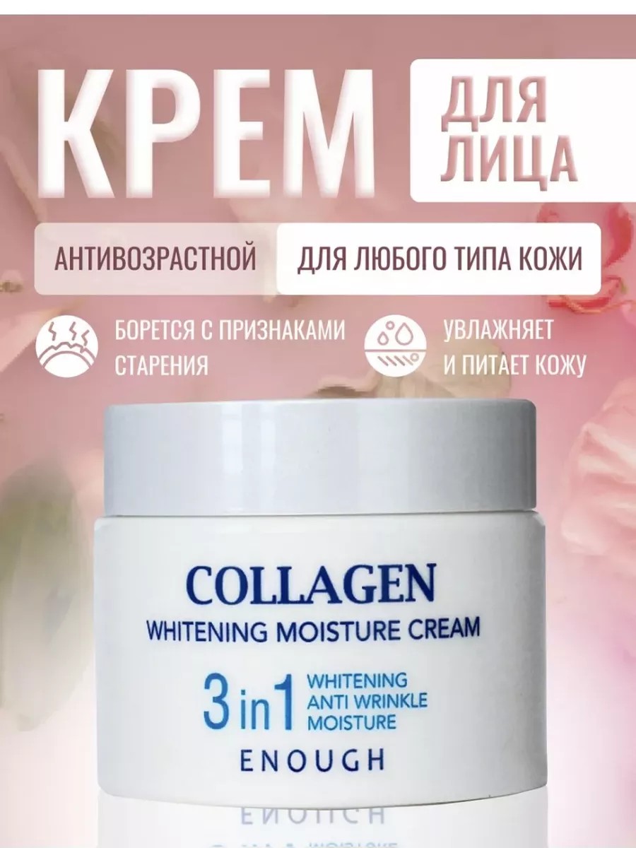 Крем Enough collagen 3 в 1 - многофункциональное средство для ухода за лицом, идеально подходящее для разнообразных типов кожи. Корейская косметика, которая обеспечивает лифтинг, питание и коррекцию возрастных изменений. Это эффективное анти-возрастное средство, которое борется с проблемными зонами и значительно снижает признаки старения, благодаря своему ботокс-эффекту. Содержит коллаген, гиалуроновую кислоту и витамины, которые эффективно питают и придают упругость коже. Дневные кремы обладают увлажняющими свойствами, создают защитный барьер от воздействия окружающей среды и способствуют синтезу коллагена. Они обеспечивают упругость и лифтинговый эффект. Ночные кремы предназначены для восстановления клеток и интенсивного увлажнения кожи во время сна. Этот питательный крем с коллагеном подходит для нормальной, комбинированной и жирной кожи. Он помогает бороться со сухостью, выравнивает тон, уменьшает морщины и корректирует овал лица. Также обогащен бетаином и эффективен в борьбе с признаками старения. Глубоко проникает в кожу, обеспечивает упругость и поддерживает оптимальный уровень увлажнения. Этот профессиональный продукт имеет легкую текстуру и приятный запах, быстро впитывается и не оставляет жирной пленки. При использовании биокрема овал лица подтягивается, морщины уменьшаются, а кожа становится более упругой. Оригинальная косметика из Кореи подходит для всех типов кожи, включая чувствительную и проблемную, и обеспечивает надежную защиту. Его состав также включает масла ши, экстракт центеллы и другие полезные компоненты, которые улучшают структуру и общее состояние кожи. Косметологический оригинальный продукт, универсальный в использовании, легкий и невесомый, как флюид, прекрасно справляется с возрастными изменениями и проблемами на лице. Подходит для всех возрастов и помогает улучшить внешний вид. Нет ничего лучше, чтобы достичь долгосрочных результатов. Это омолаживающее средство станет прекрасным подарком для ваших близких на любой праздник!