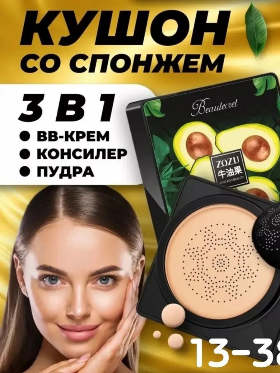 Тональный крем-кушон для лица (BB-крем) в комплекте со спонжем - подходит для всех типов кожи, увлажняет, питает и матирует кожу лица, идеально перекрывает тёмные круги под глазами, убирает покраснения на лице, пигментацию и другие несовершенства. Крем подстраивается под Ваш тон кожи, при этом не пересушивает ее. Можно использовать как консилер. Тональный крем обеспечивает долговременный уход и увлажнение.Мягкая пуховка-спонж обеспечивает экономичный расход средства.; обладает высокой покрывающей способностью.Способ применения кушона: Нанесите небольшое количество кушона на кожу лица, акцентируя внимание на проблемных зонах.Растушуйте консилер спонжем.Рекомендуется закрепить результат пудрой, для большей стойкости. Оличная косметика для подростков. корейская косметика.Отлично подходит для использования каждый день, для особых случаев, а также интересная идея подарка. Удобная, компактная и красивая упаковка, ее удобно брать с собой: в офис / на работу / поездки / путешествия, авокадо, консилер для лица, тональный крем отличный подарок девочке / женщине / маме / подруге / сестре на 8 марта