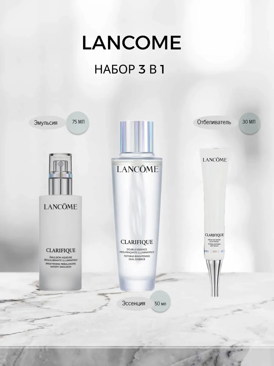 | Комплектация | эмульсия - 1 шт; эссенция ланком - 1 шт; крем осветляющий 1 шт |