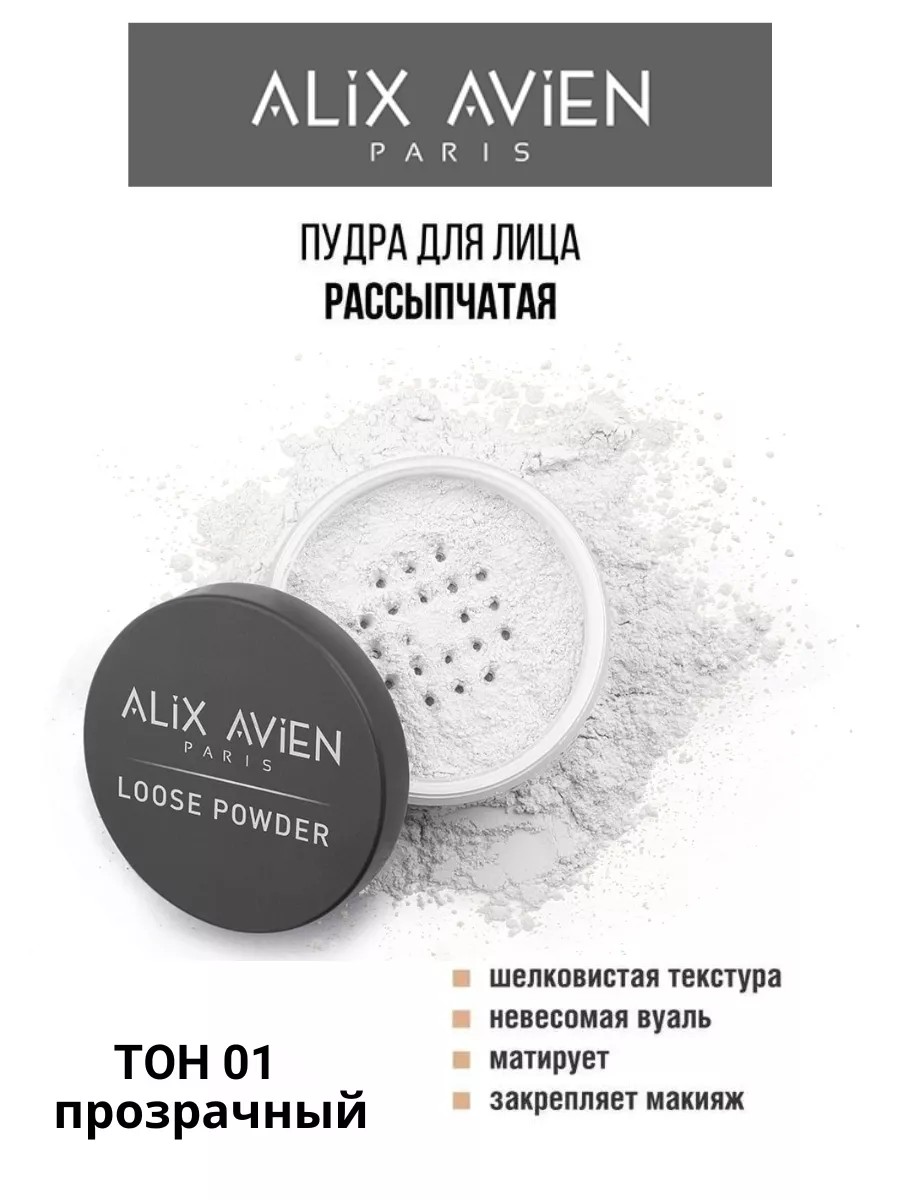 Эта рассыпчатая пудра для лица прекрасно контролирует жирный блеск, гарантируя матовый финиш на протяжении дня. Она легко наносится с помощью кисти или спонжа, не оставляет пятен и не подчеркивает морщинки, делая её отличным выбором для дневного и вечернего макияжа. Пудра подходит для использования с любыми тональными средствами, включая крема и базы, обеспечивая их долговечность и улучшая стойкость макияжа. Благодаря прозрачному покрытию, пудра Alix Avien не изменяет оттенок основного тона, а лишь закрепляет его, создавая натуральный и естественный результат.