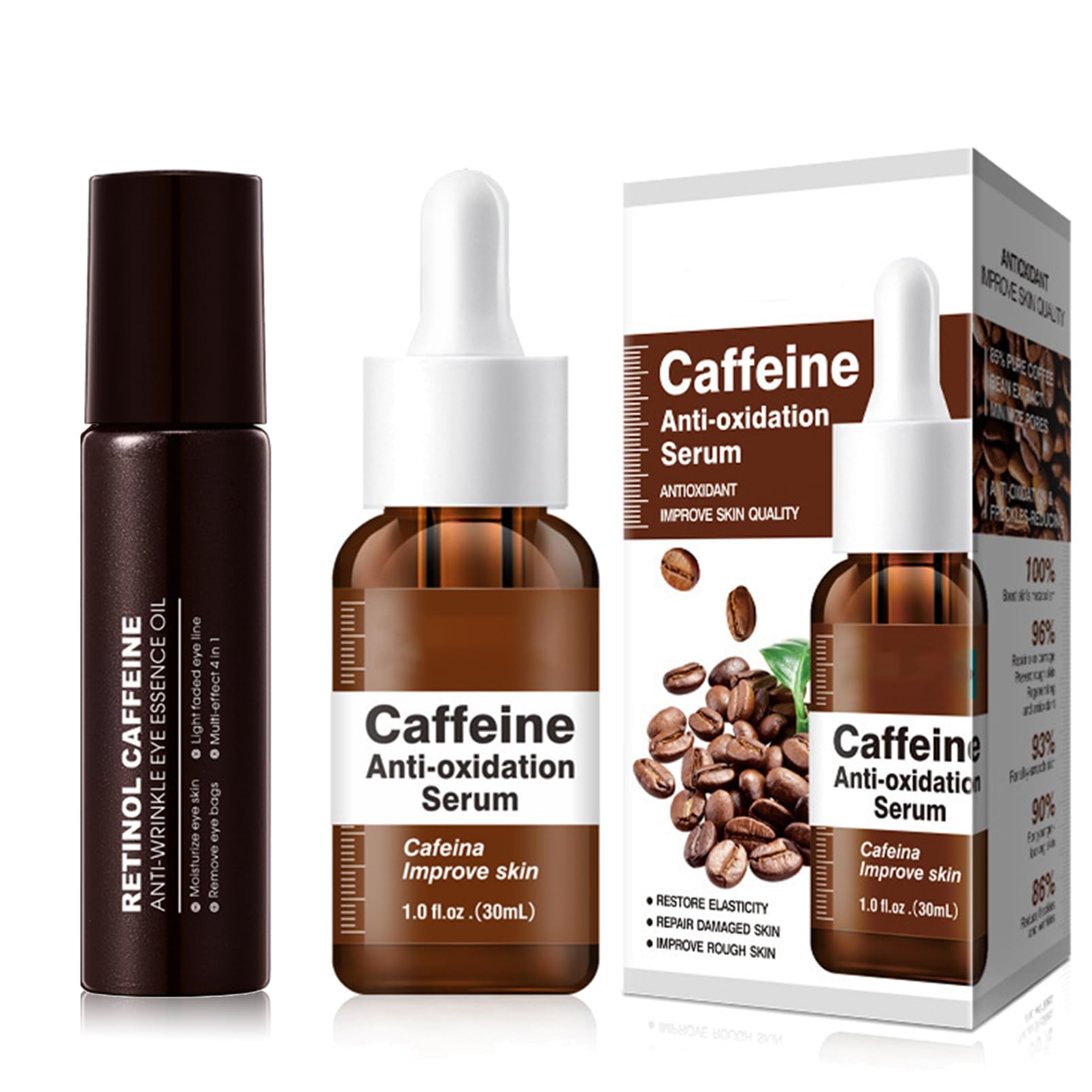 ?Suitable for All Kinds of Skin?Caffeine serums skincare and eye cream anti aging / eye cream for wrinkles is not greasy and sticky, suitable for dry and sensitive skin and all skin types. Anti aging serum for face is a good brightening serum and anti-aging serum. ?Caffeine Hydrating Serum kit?This serum face is brimming with caffeine and hyaluronic acid to hydrate, Soother and fight the appearance of obesity in the face. Retinol serum under eye serum can nourishes and moisturises around the eyes.Experience reducing fine lines and wrinkles. ?Minimize Wrinkles and Lines?The dark spot correcting glow serum could be used as dark spot corrector daily skincare serum reduce fine lines and eye serum for lines and wrinkles around the eyes,puffy eyes bags under eyes,prevent the appearance of fine lines and smooth the wrinkles that have already occurred.Hydrating under eye serum repaire sun damage and evening out skin tone. ?Caffeine Plumping Up The Skin?Caffeine Eye Lift Serum Kit is rich in effective ingredients such as Retinol, Hyaluronic acid and Nicotinamide, which can solve facial and eye problems. Collagen serum for face stimulate the production of collagen in the skin to keep your skin looking fresh all day, forming a more effective protective moisture barrier. ?Fade Puffiness on Face & Eye?Caffeine solution is famous for its good antioxidant effect. Our face serum for women and men set is very suitable for face edema, you can use this caffeine antioxidant serum, which can effectively reduce the puffiness on your face and around your eyes.