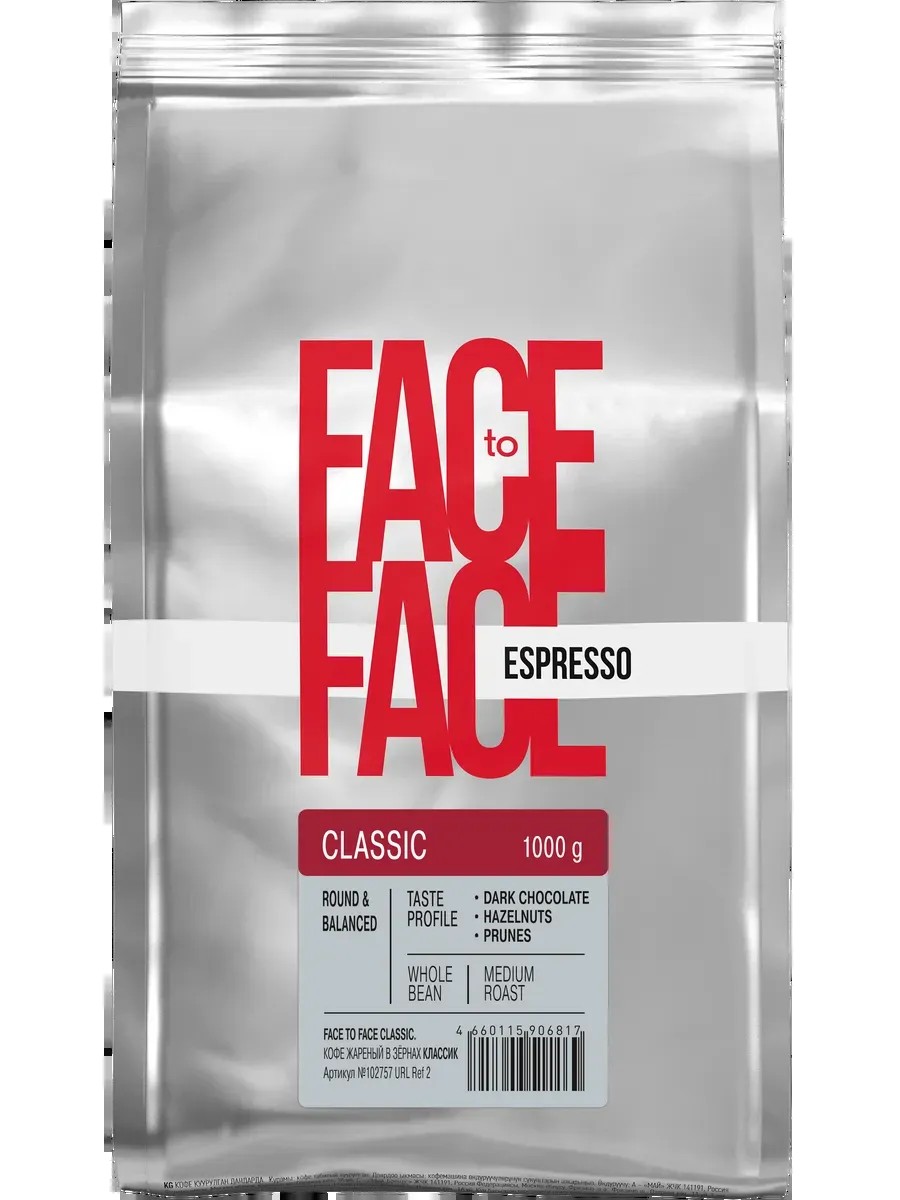 Face to Face Кофе зерновой Classic 1кг. Кофе в зернах Face to Face Classic - это сочетание арабики и робусты, которое подарит вам насыщенный и богатый вкус.