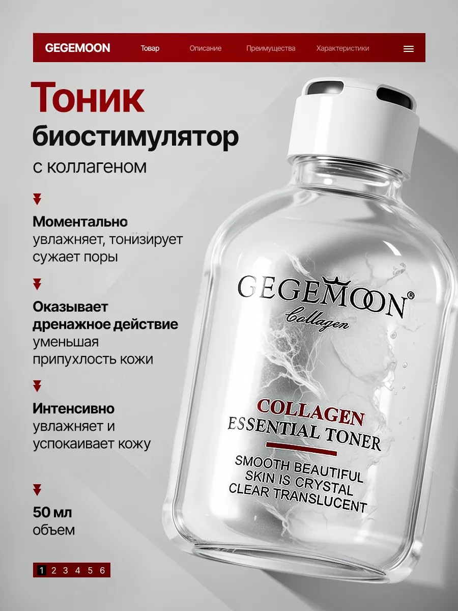 Тоник для лица Gegemoon Collagen Essential Toner — это уникальное средство для ухода за кожей лица, созданное для женщин, стремящихся поддерживать молодость и здоровый вид кожи. Этот тонер на основе коллагено-гиалуронового комплекса помогает обеспечить оптимальный уровень увлажнения, что особенно важно для кожи, подверженной сухости и старению. Его использование позволит вам заметить, как ваша кожа становится более упругой, а морщины менее выраженными.