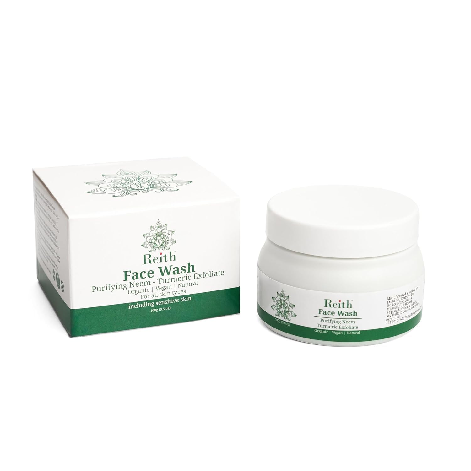 Generous 100g jar lasts long for extended use, ensuring a lasting, effective skincare routine and value for money. Innovative formula with Kokum Butter, Vitamin E, Castor Oil & Orange Peel Oil to rejuvinate your skin with soothing aroma. Formulated to suit all skin types, including sensitive skin, promoting a clear, glowing complexion. Gently exfoliates with Malic acid (AHA), removing dead skin cells, leaving your skin refreshed and revitalized. It's mild nature makes it perfect for sensitive skin. Face Wash harnesses the power of natural Neem, Turmeric & Malic Acid (Fruit AHA) to deeply cleanse and purify your skin.