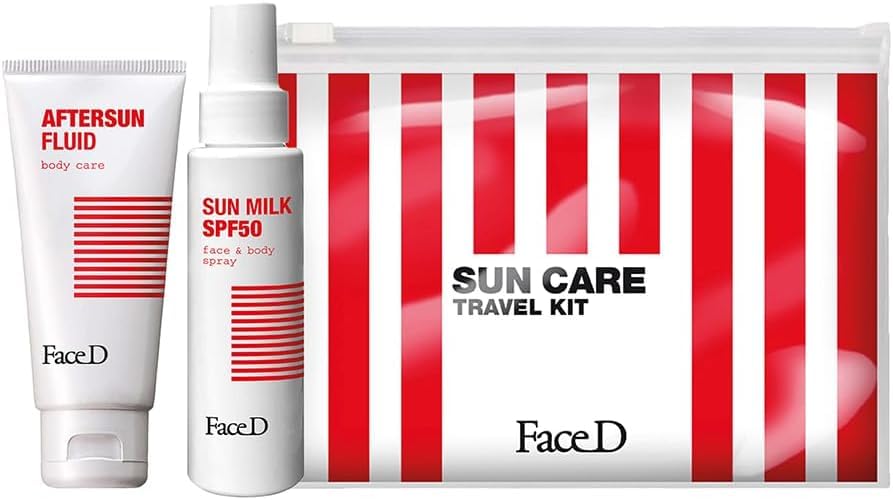 The perfect travel kit for your skin during holidays or trips. Each product contains 100 ml (the maximum allowed for air travel). SPF 50 Sunscreen Lotion (100 ml): High-performance sunscreen for face and body, with broad-spectrum sun filters to provide high protection against UVA, long UVA, UVB, and infrared rays that cause the formation of free radicals. Nourishing formula with emollient and protective carrot and olive oils to promote a golden, even tan while combating the cellular aging process. Enriched with antioxidant vitamin E and tan activator to stimulate melanin synthesis, accelerating tanning and prolonging it. After-Sun Fluid (75 ml): For face and body, highly soothing and non-greasy, it immediately nourishes and relieves skin reddened by prolonged sun exposure. Helps combat dehydration thanks to its Aloe Vera-based formula, known for its moisturizing, soothing, and rust-relieving properties. Relieves tight skin and helps restore proper moisture levels. Opaline pouch made of recycled plastic with printed cardboard. DIRECTIONS FOR USE SPF 50 Sunscreen Lotion (100 ml): Shake well before use and apply evenly before sun exposure. Reapply every 2 hours to maintain sun protection, especially after sweating, getting wet, or drying off. SAFETY WARNING For external use only. Do not apply to broken or irritated skin. Avoid prolonged sun exposure and exposure during the hottest hours of the day. Excessive sun exposure is a serious health risk. Do not expose babies and children to direct sunlight. Reducing the amount applied will lower the level of protection. The sunscreen filters may stain fabrics. See moreSuitable for: all skin types, even the most sensitive. Free from: SPF 50 sunscreen ingredients of animal origin, silicones, petrolatum, parabens, phthalates, sulfates, and dyes. --- After-sun fluid free from ingredients of animal origin, silicones, alcohol, petrolatum, parabens, phthalates, sulfates, and dyes. Formulated with: SPF 50 sunscreen with UVA UVB and infrared filters to protect against photoaging soothing and protective carrot and olive oils to promote a golden and even tan and antioxidant vitamin E, a tan activator to stimulate melanin production, prolonging your tan. After-sun fluid with aloe vera, known for its moisturizing, soothing, and rust-relieving properties glycerin to relieve tightness and help restore proper skin hydration levels. Action: SPF 50 sunscreen provides daily protection against the harmful effects of the sun's rays. --- After-sun fluid helps combat dehydration, provides relief to tight skin, and restores the skin's natural moisture balance. Product: SPF 50 Sunscreen Lotion (100 ml): fluid and lightweight texture, water-resistant, absorbs quickly without leaving a white residue. --- After-sun Fluid (75 ml): fluid and fresh texture, highly soothing and non-greasy, immediately nourishes and relieves skin on the face and body reddened by prolonged sun exposure. Opaline pouch made of recycled plastic with printed cardboard.Face D - Sun Care Travel Kit de voyage Visage et Corps - 100 ml et 75 mlDESCRIPTION DU PRODUIT DESCRIPTION DU PRODUIT Le kit de voyage parfait pour votre peau pendant les vacances ou vos voyages. La quantité de chaque produit est comprise dans les 100 ml (quantité autorisée pour voyager en avion). Lait solaire SPF50 (100 ml) : haute puissance solaire pour visage et corps, avec filtres solaires à large spectre pour offrir une protection élevée aux rayons UVA, UVA-longs, UVB et rayons infrarouges qui causent la formation de radicaux libres. Formule nourrissante avec des huiles de carotte et d'olive émollientes et protectrices pour favoriser un bronzage doré et uniforme, en luttant contre le processus de vieillissement cellulaire. Enrichie en vitamine E antioxydant et activateur de bronzage pour stimuler la synthèse de mélanine en accélérant le bronzage et la prolongeant dans le temps. Fluide après-soleil (75 ml) : visage et corps, hautement apaisant et non gras, nourrit et soulage immédiatement la peau rougie par une exposition prolongée au soleil. Aide à lutter contre la déshydratation grâce à la formule à base d'Aloe Vera, aux propriétés hydratantes, apaisantes et dérouillantes. Soulage la peau qui tire et contribue à restaurer le bon niveau d'hydratation cutanée. Pochette opaline en plastique recyclé avec carton imprimé. MODE D'EMPLOI Lait solaire SPF 50 (100 ml) : agiter avant utilisation et appliquer uniformément avant de s'exposer au soleil. Répétez l'application toutes les 2 heures pour maintenir la protection solaire, en particulier après avoir transpiré ou s'être mouillé ou séché. AVERTISSEMENT DE SÉCURITÉ Utilisation externe, ne pas appliquer sur la peau blessée ou irritée. Évitez l'exposition au soleil prolongée et pendant les heures les plus chaudes de la journée. Une exposition excessive au soleil constitue un risque grave pour la santé. Ne pas exposer les bébés et les enfants à la lumière directe du soleil. Une réduction de la quantité appliquée réduit le niveau de protection. Les filtres solaires présents peuvent tacher les tissus. Voir plusFace à : tous les types de peau, même les plus sensibles. Sans : lait solaire SPF50 ingrédients d'origine animale, silicones, pétrolates, parabènes, phtalates, sulfates et colorants. --- Fluide après-soleil ingrédients d'origine animale, silicones, alcool, pétrolates, parabènes, phtalates, sulfates et colorants. Formulé : lait solaire SPF50 filtres solaires UVA UVB et rayons infrarouges protègent contre la photo vieillissement, huiles de carotte et d'olive apaisantes et protectrices pour favoriser un bronzage doré et uniforme, vitamine E antioxydant et activateur de bronzage pour stimuler la production de mélanine en prolongeant le bronzage dans le temps. --- Fluide après-soleil avec Aloe Vera aux propriétés hydratantes, apaisantes et dérouillantes, glycérine soulage la peau qui tire et contribue à restaurer le bon niv