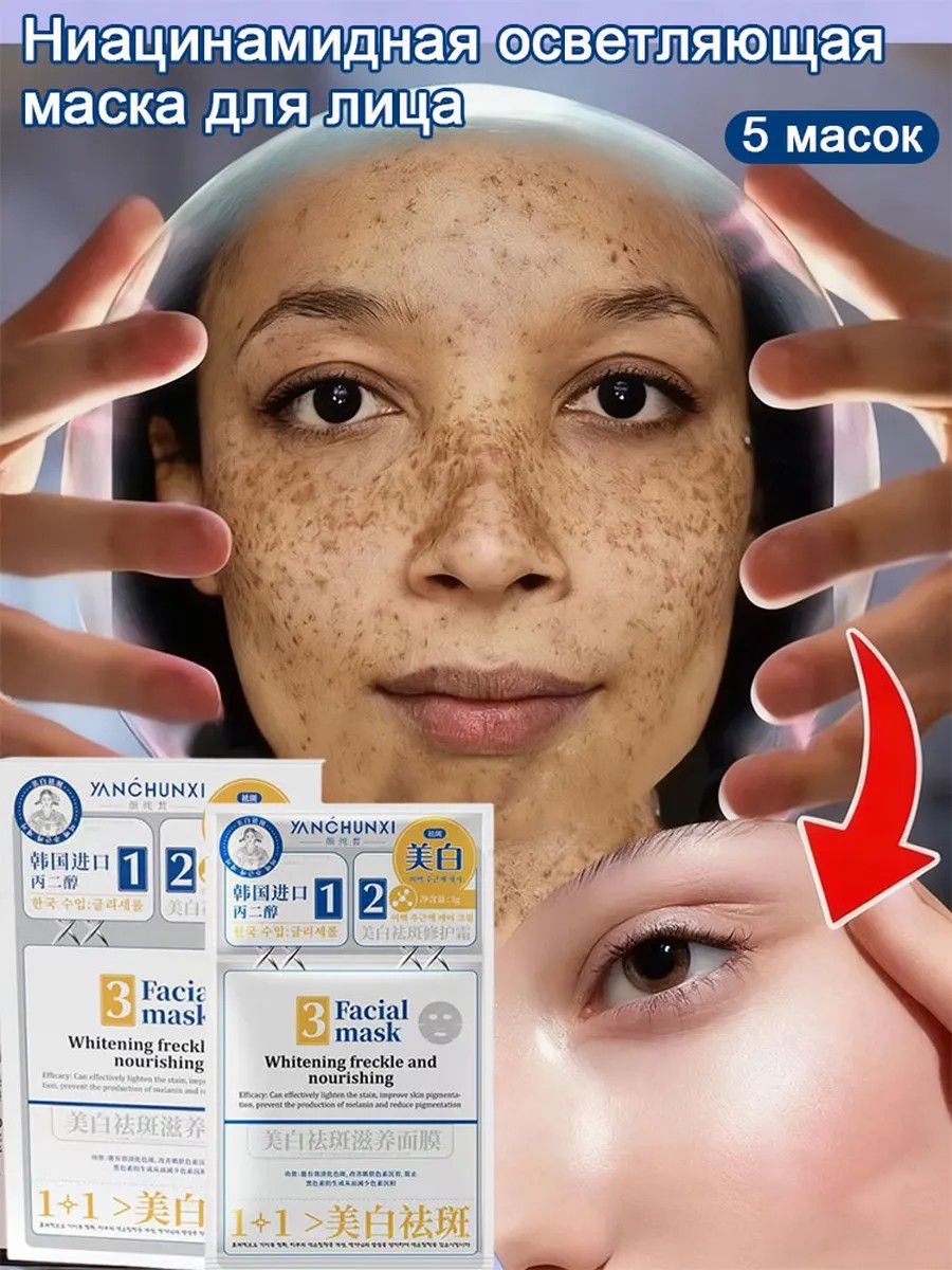 Осветляющая маска для лица с ниацинамидом 5шт