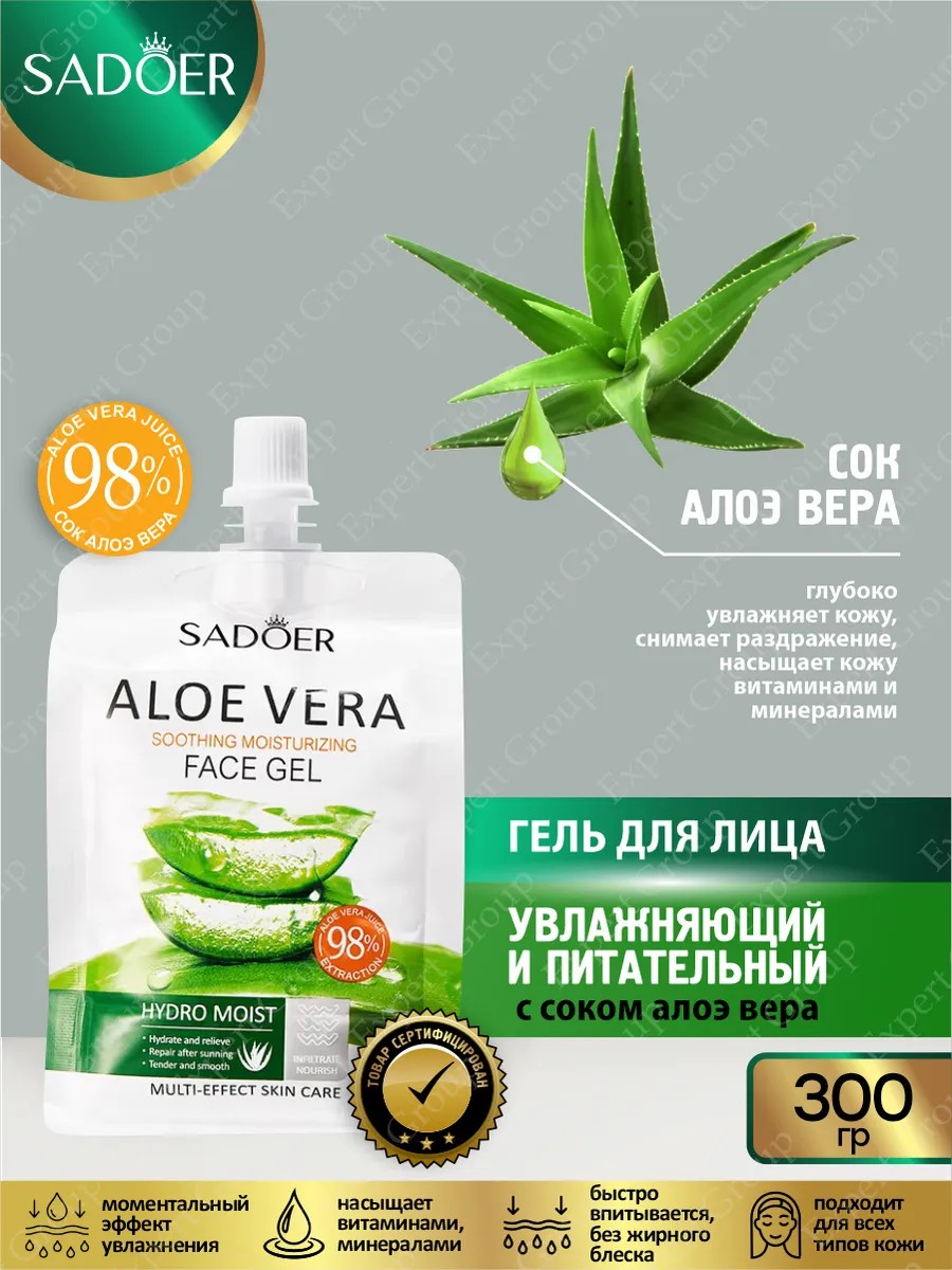 | Комплектация | Увлажняющий и питательный гель для лица Sadoer с соком алоэ вера 300 гр Дой-пак |
