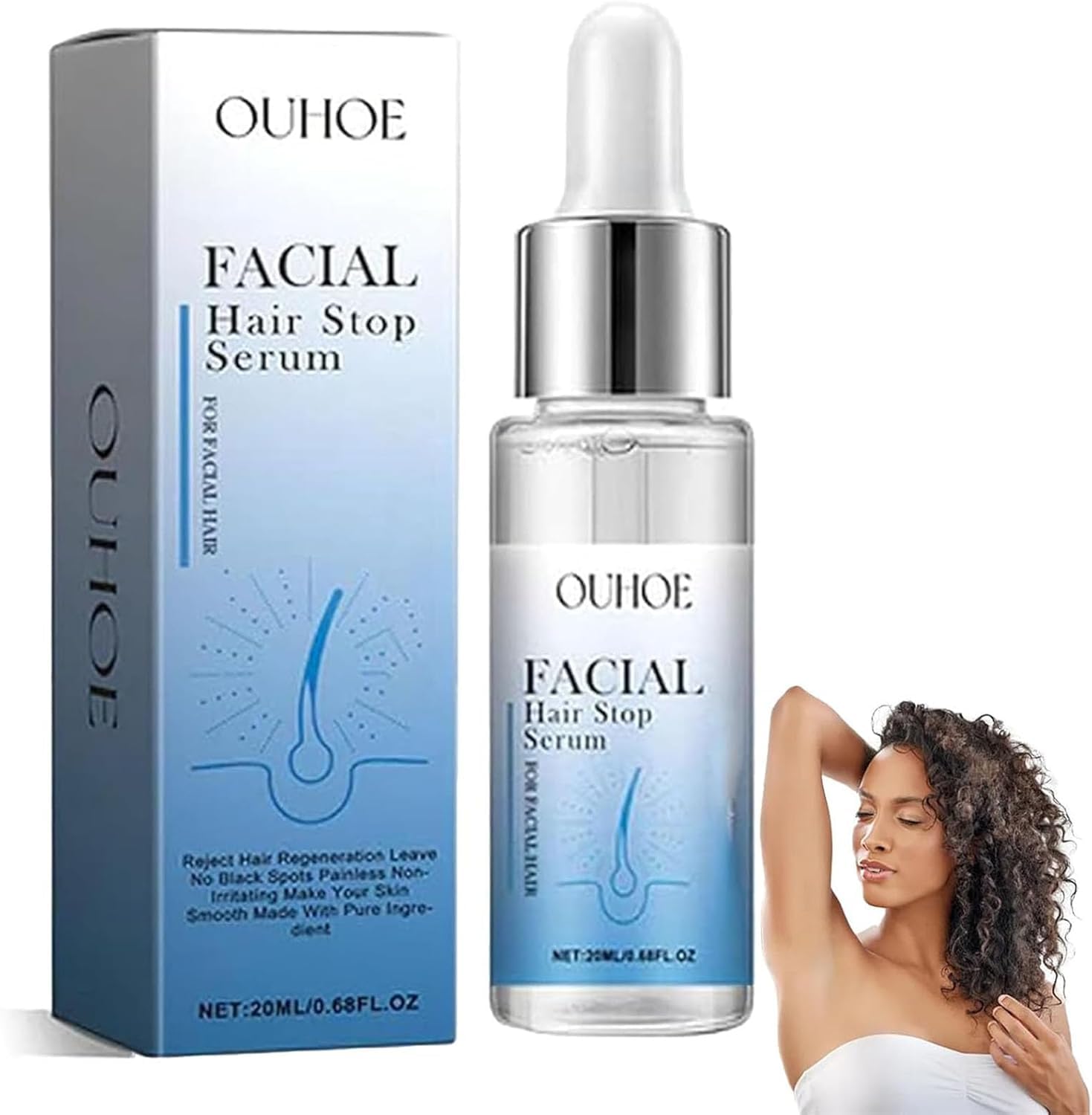 Specification: Produck Name: Facial Hair Stop Serum Net: 20ml 1oz Shelf Life: 3 Years Package Includes: 1 2 3Pcs Facial Hair Oil Notes: 1. Due to different display and lighting effects, the actual color of the item may be slightly different from the color shown on the picture. 2. If you have any questions, please feel free to send us an email, we will give you a satisfactory reply within 24 hours.How To Use: To achieve smooth, hair-free skin, simply cleanse thoroughly, spread the cream evenly over the desired area and gently remove the protective cream after 10 to 15 minutes. No need for razors or waxing. Versatile Hair Remova: Facial Hair Removal Essence Remove hair not on face, arms, legs, underarms and more with our gentle cream suitable for most skin types. Get smooth skin in minutes and without hassle. Eliminates Hair Growth: Facial Hair Removal Serum removes hair from the root and slows hair growth, resulting in long-lasting smoothness and eliminating the need for frequent hair removal. Enjoy a hair-free face with long-lasting results. Effective Hair Removal: Deeper and more effective hair removal with our facial hair removal cream. The Facial Hair Stop Serum quickly penetrates the hair follicles, softening the hair roots for a deeper, smoother result, giving your skin a flawless look. Natural Facial Hair Removal: Facial Hair Serum Get rid of unwanted hair gently and effectively, without scratches or cuts. Facial Hair Remover Serum is non-irritating and made with natural ingredients that leave skin nourished and soft.