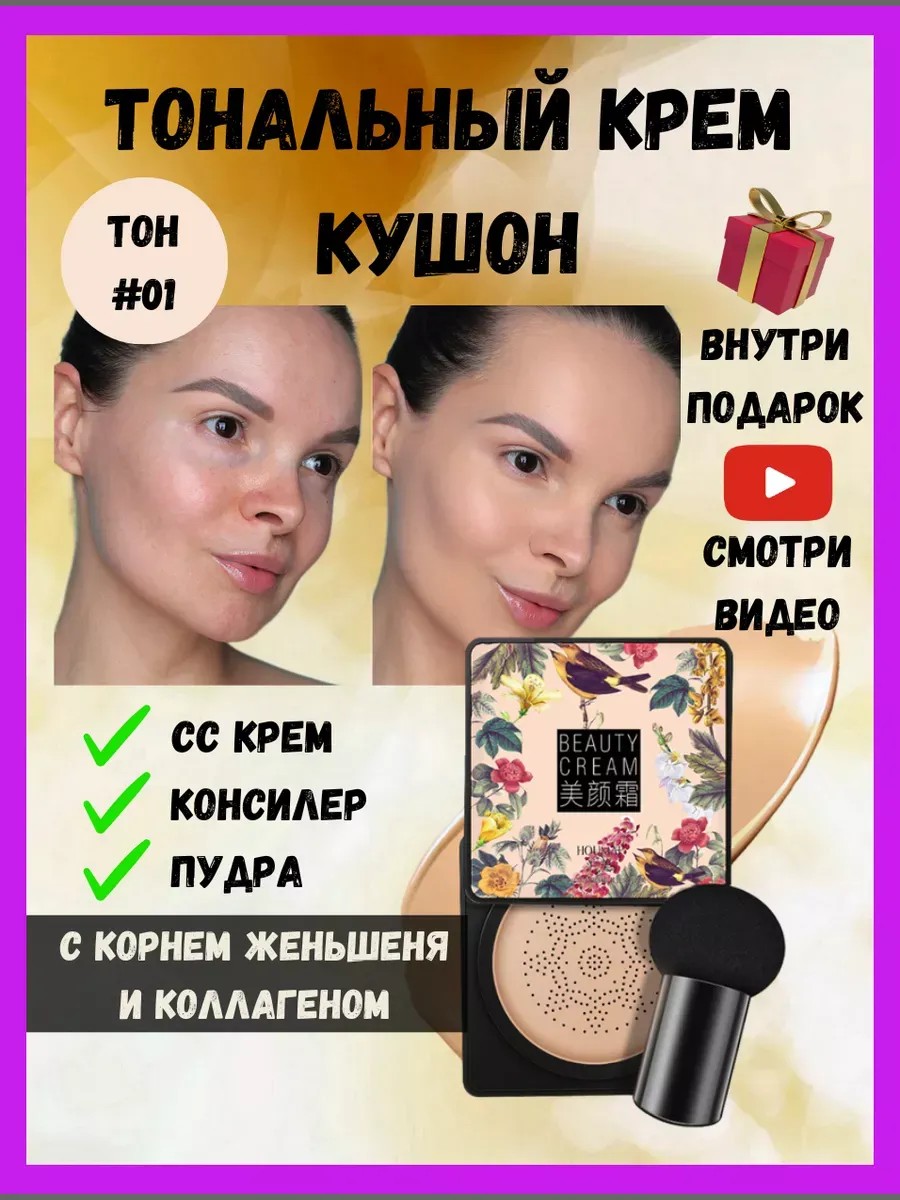Кушон для лица - ваш водостойкий спутник красоты! Косметический продукт, ставший открытием в мире макияжа - кушон светлый. Этот удивительный крем объединяет в себе пудру и защитный bb крем с SPF. Давайте рассмотрим подробнее, почему кушон популярен и может стать незаменимым помощником в макияже. Одним из главных преимуществ применения является его основа, она перекрывает недостатки для дневной красоты. Тонкий слой ложится на кожу, без эффекта тяжести и маскировки. Позволяет коже дышать, матирует ее, скрывает прыщи, акне и создает эффект сияния на весь день. Формула отлично подстраивается под тип кожи, выравнивая ее текстуру и скрывая мелкие родинки, пятна, покраснения или несовершенства, темные круги под глазами. Это важно тем, кто стремится к натуральному тону без тяжелых тональных средств. Специально разработанная упаковка обеспечивает легкость и удобство в использовании. В комплект входит спонж, который равномерно распределяет по всему лицу, создавая естественный финиш. Процесс нанесения косметики максимально приятный и быстрый. Кушон обладает ухаживающими свойствами. Содержит увлажняющие компоненты - экстракт авокадо и муцин улитки, питающие и омолаживающие кожу. Это особенно классно в зимний период и в условиях сухого воздуха. Один из особых плюсов - наличие SPF, делает его отличным выбором для защиты кожи от вредного воздействия солнечных лучей. Флюид создает идеальный облик и заботится о кожи. Легко наносится даже в течение дня, не требуя дополнительных усилий. Подходит для освежения макияжа и придания коже здорового цвета и сияющего вида в любой момент. Отлично подходит для тех, кто предпочитает минимализм в уходе за собой. Заменяет несколько шагов в уходе за кожей, тон и защита от солнца, в компактном флаконе. Кушон идёт не просто, как красивое средство, это настоящий подарок для кожи. Консилер творит правильный мейкап, гарантирует уход, делая ваш образ безупречным. Попробуйте новую корейскую технологию и почувствуйте разницу - кожа будет вам благодарна!