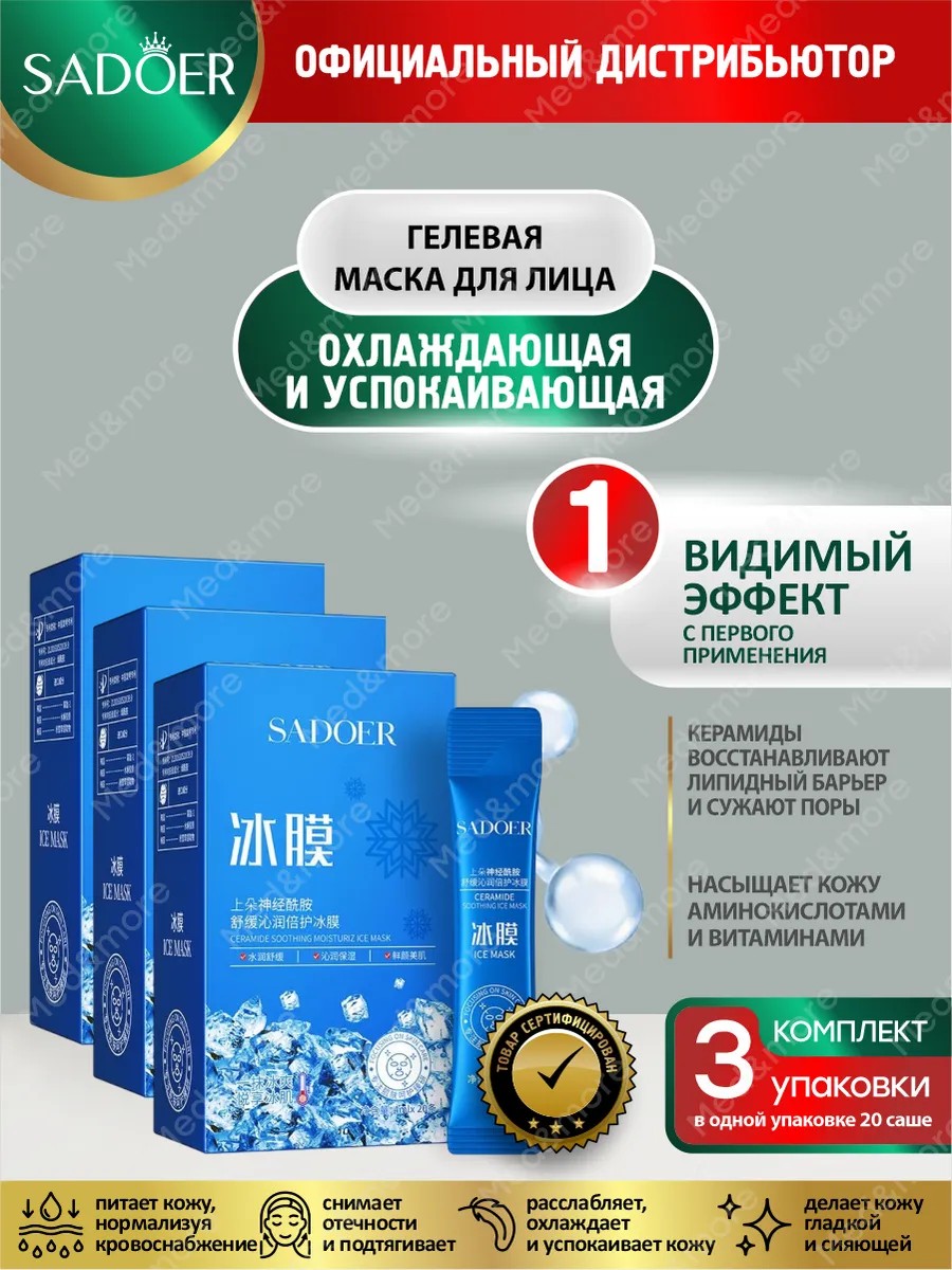 | Полное наименование товара | Комплект Охлаждающая и успокаивающая маска для лица Sadoer с керамидами 4 мл. 20 шт./уп. х 3 уп. |