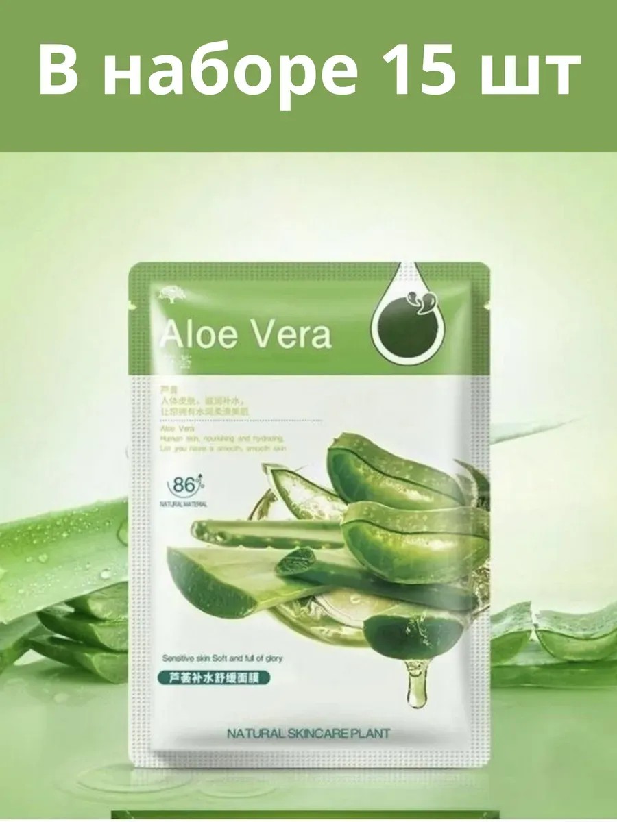 Маски для лица тканевые алоэ вера 15 шт
