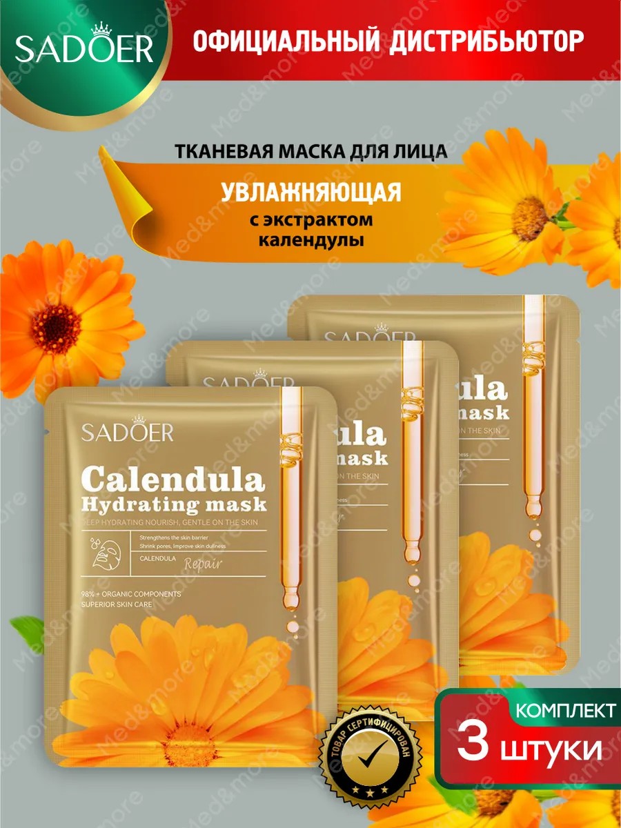 | Полное наименование товара | Комплект Увлажняющая тканевая маска для лица Sadoer с экстрактом календулы 25 гр х 3 шт. |