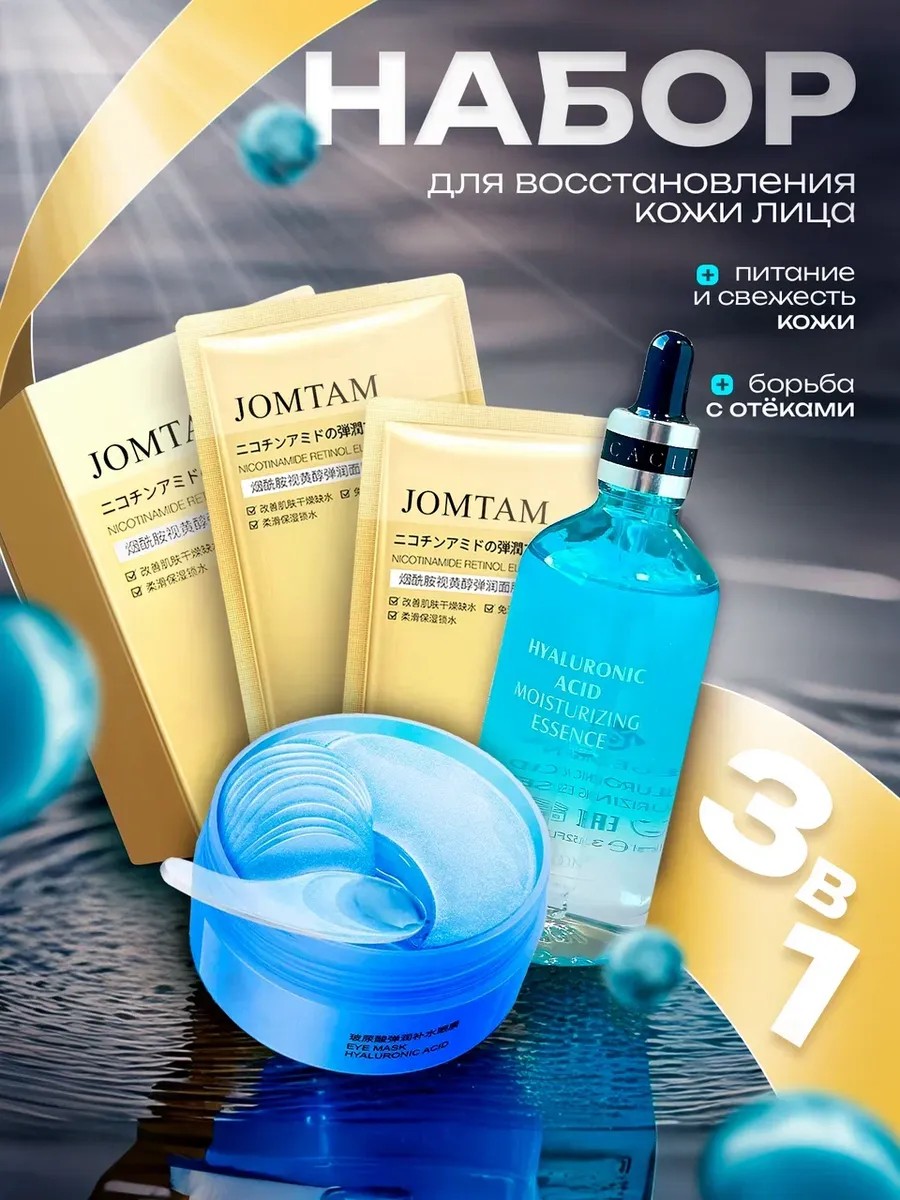 Этот набор включает в себя все необходимые продукты для комплексного ухода за кожей лица, которые помогут вам забыть о проблемах, таких как морщины, темные круги и отеки.