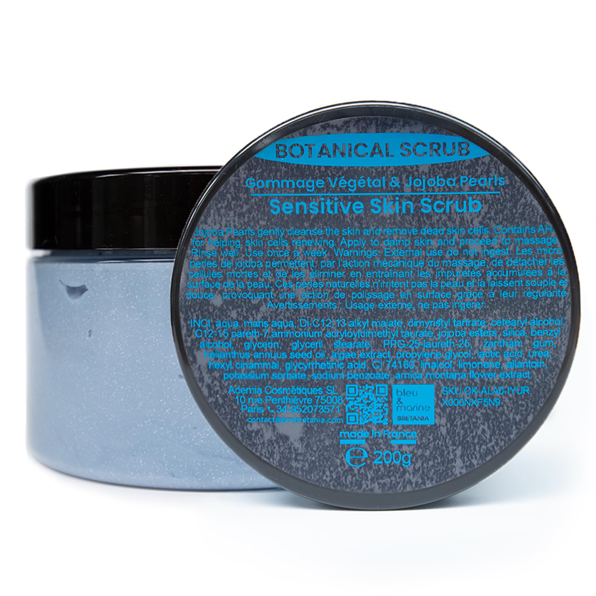 Care at home - peeling Ideal for mature skin and sensitive skin. It is used 1 to 2 times a week. Applied as a mask to the face and neck, avoiding the eyes. Fast, with a short application time of 5 minutes. rinse.Nice booster of your skin's respiratory metabolism mechanism. Removes impurities and refines the grain. Scrub with plant-based enzymes The soft and active texture of this peeling adapts to all skin types, including sensitive skin. Smoothness, shine and vitality thanks to jojoba beads.Gezichtspeeling met jojoba-kralen en AHA 200 g gemaakt in Frankrijk gevoelige huid Verzorging thuis - peeling Ideaal voor rijpe huid en gevoelige huid. Het wordt 1 tot 2 keer per week gebruikt. Wordt als een masker op gezicht en hals aangebracht en voorkomt de ogen. Snel, met een korte inwerktijd van 5 minuten. uitspoelen.Leuke impulsgever van het luchtwegstofwisselingsmechanisme van je huid. Verwijdert onzuiverheden en verfijnt de korrel. Scrub met plantaardige enzymen De zachte en actieve textuur van deze peeling past zich aan alle huidtypes aan, ook de gevoelige huid. Gladde, glans en vitaliteit dankzij jojoba-parels.