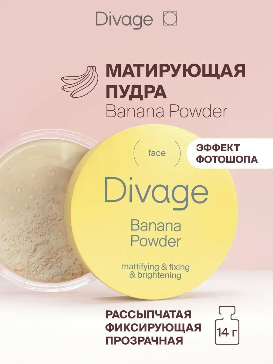 Рассыпчатая банановая пудра для лица Beauty Killer Banana Powder 01 матирует, нейтрализует покраснения, маскирует дефекты и надежно фиксирует макияж. "Банановый оттенок" пудры BANANA POWDER DIVAGE подходит к любому тону кожи. Пудра поможет в создании макияжа в технике "бейкинг". Банановая пудра с полупрозрачным желтоватым оттенком прекрасно скроет мелкие несовершенства и покраснения на коже. Пудра не бликует при фотовспышке и не выбеливает кожу.