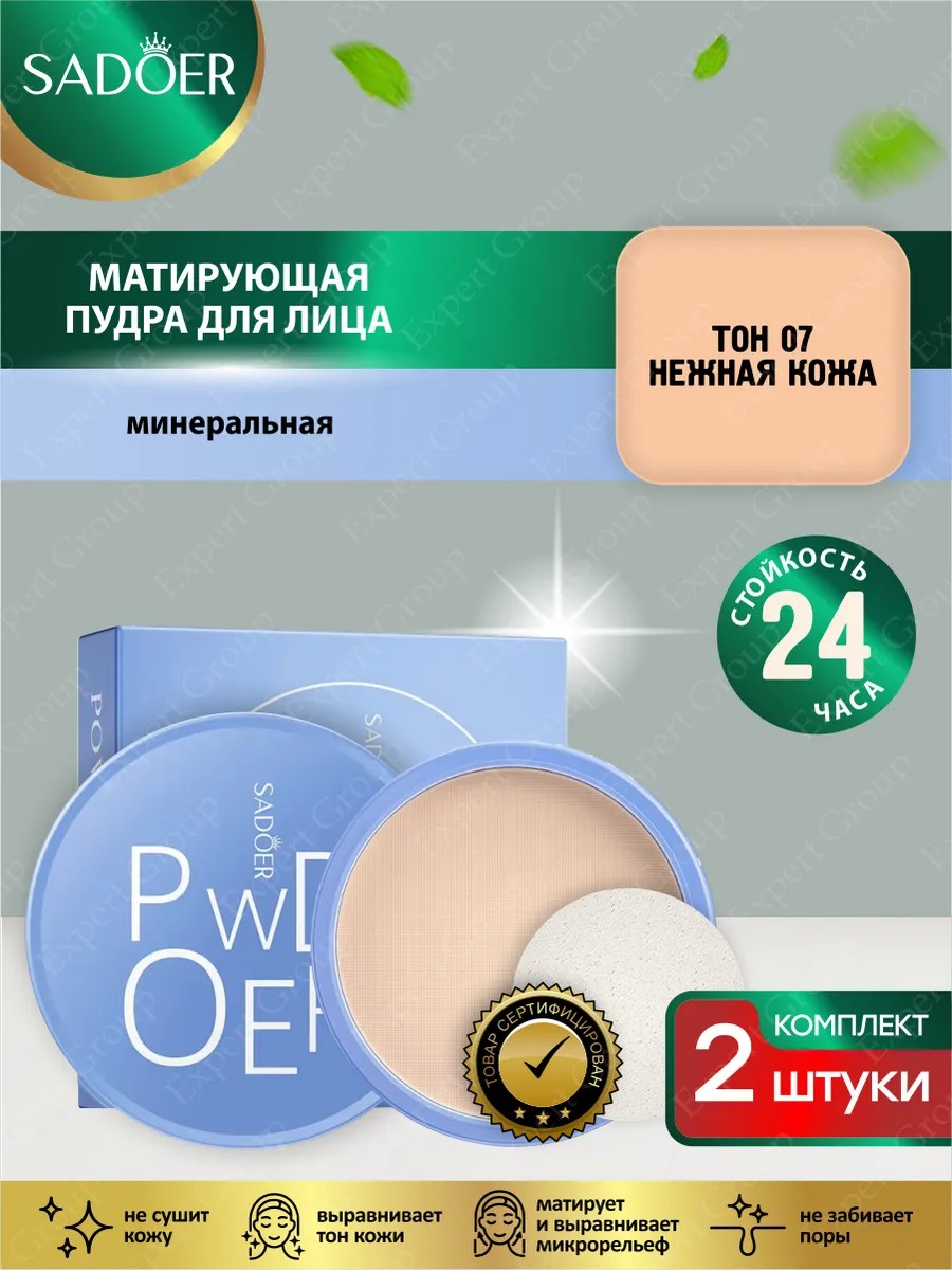| Комплектация | Матирующая пудра для лица Sadoer тон 07 Нежная кожа 16 гр х 2 шт. |