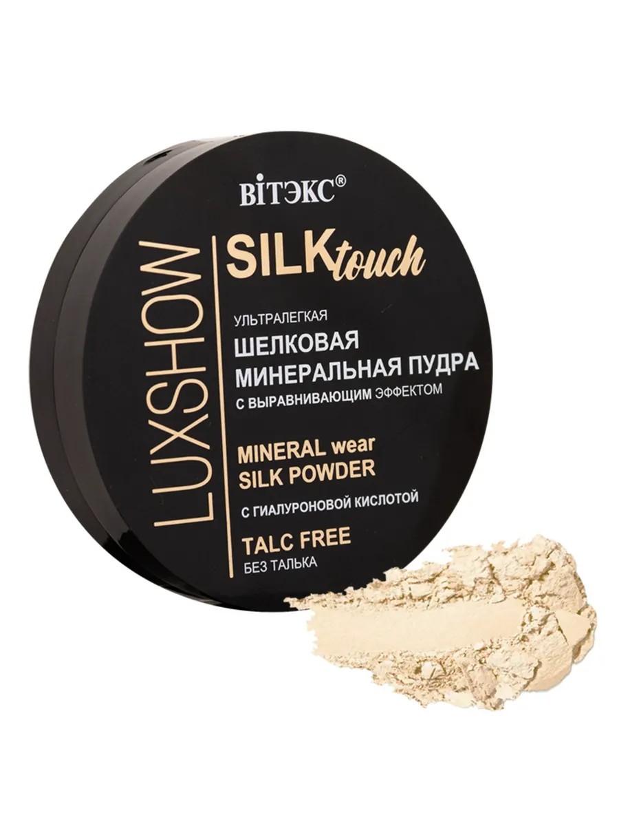 LUXSHOW Silktouch Talc-Free Mineral Face Powder, Shade 01 Light Beige, VITEX. This luxurious, premium-quality mineral powder perfectly evens out skin tone, conceals pores and imperfections, and remains completely invisible on the skin. Its optimal coverage allows it to be used on bare skin for an even, smooth, silky finish, as well as for setting foundation. Its ultra-fine texture applies easily and evenly, creating a fresh, rested, and well-groomed complexion with a natural-looking finish. This powder is ideal for everyday makeup, professional photo shoots, and stage makeup. Special mineral particles effectively absorb excess sebum, instantly eliminate shine, and provide a long-lasting matte finish, which is especially important for extending the wear of makeup in hot weather, for those with oily skin, and for those who actively exercise. It does not dry out the skin. Talc-free, won't clog pores. Fragrance-free. Suitable for all skin types. Contains coconut oil, hyaluronic acid, and magnolia extract, which nourish, soften, and smooth the skin, protect it from moisture loss, and have an anti-aging effect. Ingredients: Mica, Kaolin, Caprylyl Triglycerate/Caprate, Candelilla Wax, Magnesium Stearate, Isocetyl Stearoyl Stearate, Caprylyl Glycol, Phenoxyethanol, Hexylene Glycol, Sodium Hyaluronate, Magnolia Officinalis (Magnolia) Bark Extract, Aluminum Oxide, Magnesium Oxide. +/- (may contain): CI 77891 (titanium dioxide), CI 77492 (iron oxides), CI 77491 (iron oxides), CI 77742 (manganese violet), CI 77499 (iron oxides).