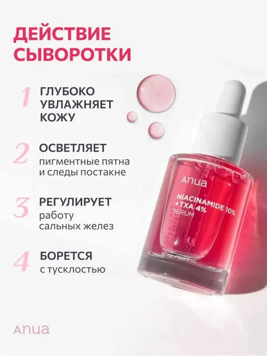 | Полное наименование товара | Anua Сыворотка осветляющая с ниацинамидом и транексамовой кислотой - Niacinamide 10% + TXA 4% Serum 30 мл |