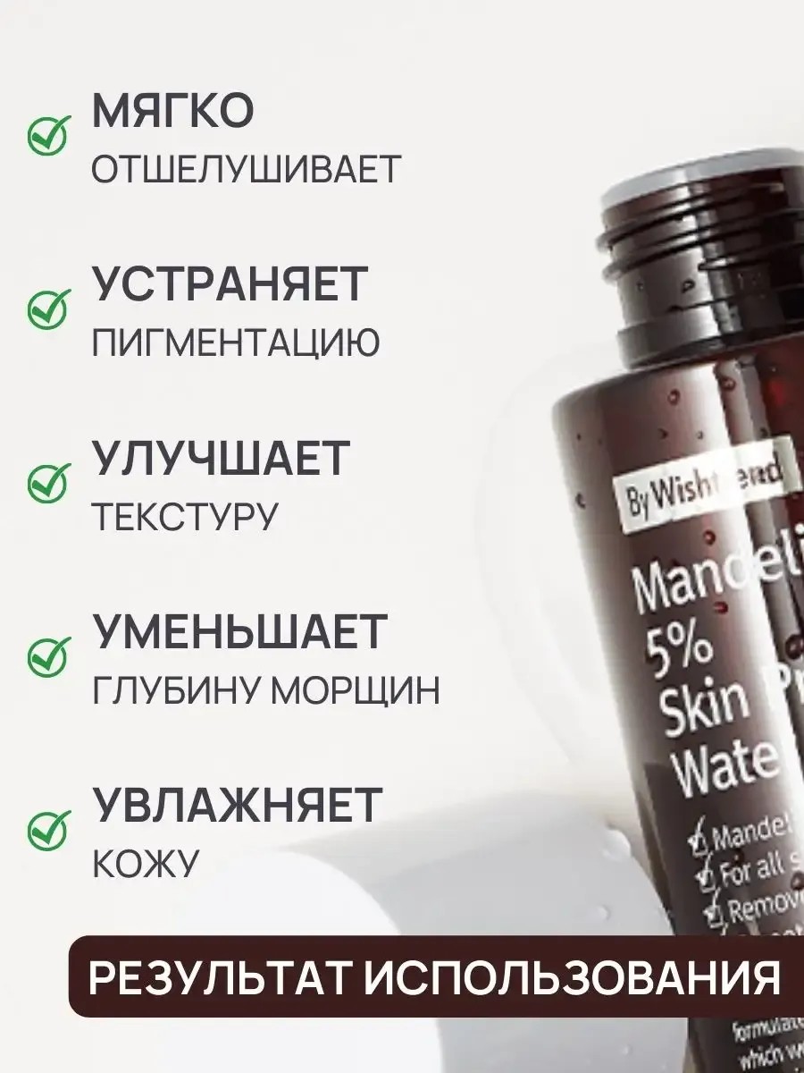 Тонер для лица с 5% миндальной кислотой By Wishtrend Mandelic Acid 5% Prep Water - не вызывающий раздражения эксфолиант. Содержит миндальную кислоту, которая имеет большой молекулярный размер, благодаря чему ее можно использовать без раздражения даже на чувствительной коже. Тонер мягко отшелушивает, помогает устранить пигментацию, улучшить тон и текстуру кожи, а также уменьшает глубину морщин и придает естественное сияние. При длительном использовании: отшелушивает омертвевшие клетки, заметно улучшает тон и текстуру кожи, уменьшает глубину морщин, повышает эффективность других продуктов. 5% миндальной кислоты, которая легко проникает в кожу, помогая устранить пигментацию и избавиться от прыщей. Бета-глюкан - обеспечивает увлажняющий, снимающий покраснение и успокаивающий эффект. тонер для лица с кислотами, от пигментации, от морщин, от прыщей, от акне, для проблемной кожи, для жирной кожи, корейская косметика, тонер для лица с кислотами, уход за кожей,тоник для лица,уход за лицом,косметика уходовая,тоник для лица с кислотами,кислоты для лица,тоник с кислотами для лица,aha кислоты,кислота для лица,тоник доя лица,тоник с фруктовыми кислотами,тоник от акне,для ухода за лицом,тоника для лица,фруктовые кислоты для лица,тоники для лица,тоник для дица,красота