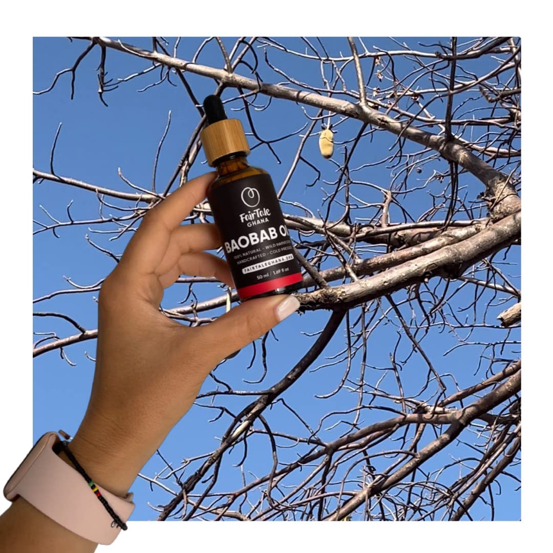 Pure. Potent. Ethical. This 50ml bottle holds our finest cold-pressed Baobab oil - unrefined and straight from the seeds of the iconic Baobab fruit. Handmade and pressed by a woman in Northern Ghana, this oil is as real as it comes. ✓ Fast absorbing and light – perfect for daily use on face, body or hair. Packed with Omegas 3, 6 and 9 – supports skin elasticity and glow ✓ Non-greasy, non-comedogenic – suitable for all skin types ✓ Nothing added – just clean. natural Baobab oil in a UV-protective dark amber glass bottle Every drop supports women in Ghana who keep traditional knowledge alive - while offering your skin a deep soothing, no-fuss treatment. FairTale GHANA means fair, ethical sourcing — without shortcuts. Just the way it should be. INGREDIENTS Baobab Oil SAFETY WARNING For external use only: This is a standard warranty for any product, not intended for ingestion. Baobab oil is intended for topical application. Baobab oil is generally hypoallergenic. See moreAmber Glass Bottle: 50ml UV protective dark glass keeps your oil fresh and potent, naturally. Rich in Omega 3, 6 9: Deeply nourishing and helps support skin elasticity and glow. Light and fast absorbing: non-gray and perfect for face, body and hair. Skin drinks it up. Ethically Sourced in Ghana: Made by a woman in Northern Ghana. Each bottle supports fair weights and traditional craftsmanship. 100 pure baobab oil: cold pressed and not refined - no fillers, no additives, just nature.FairTale GHANA Baobab Oil 1,69 fl.oz 50 ml Handcrafted, 100 Natuurlijk, Wild Harvested, Unrefined, Koud geperst Pure. Potent. Ethical. Deze 50 ml fles houdt onze fijnste koudgeperste Baobab-olie - ongeraffineerd en recht van de zaden van de iconische Baobab-fruit. Met de hand gemaakt en geperst door een vrouw in Noord-Ghana, deze olie is zo echt als het is. ✓ Snel absorberend en licht – perfect voor dagelijks gebruik op gezicht, lichaam of haar. Verpakt met Omegas 3, 6 en 9 – ondersteunt huidelasticiteit en glow ✓ Non-greasy, non-comedogenic – geschikt voor alle huidtypes ✓ Nothing added – gewoon schoon. natural Baobab olie in een UV-beschermende donkere amberglasfles Elke druppel ondersteunt vrouwen in Ghana die traditionele kennis levend houden - terwijl het aanbieden van je huid een diepe ruis, no-fuss behandeling. FairTale GHANA means fair, ethical sourcing — without shortcuts. Just the way it should be. INGREDIËNTEN Baobab Oil VEILIGHEIDSWAARSCHUWING Alleen voor extern gebruik: dit is een standaardgarantie voor elk product, niet bedoeld voor ingestie. Baobab-olie is bedoeld voor topical application. Baobab-olie is over het algemeen hypoallergeen. Meer bekijkenAmber glazen fles: 50 ml UV-beschermend donker glas houdt je olie fris en potent, natuurlijk. Rich in Omega 3, 6 9: Deeply nourishing and helps support skin elasticiteit and glow. Licht en snel absorberend: niet grijs en perfect voor gezicht, lichaam en haar. Skin drinks it up. Ethically Sourced in Ghana: gemaakt door een vrouw in Noord-Ghana. Elke fles ondersteunt eerlijke gewichten en traditioneel vakmanschap. 100 pure baobab-olie: koud geperst en niet geraffineerd - geen vulstoffen, geen toevoegingen, gewoon natuur.