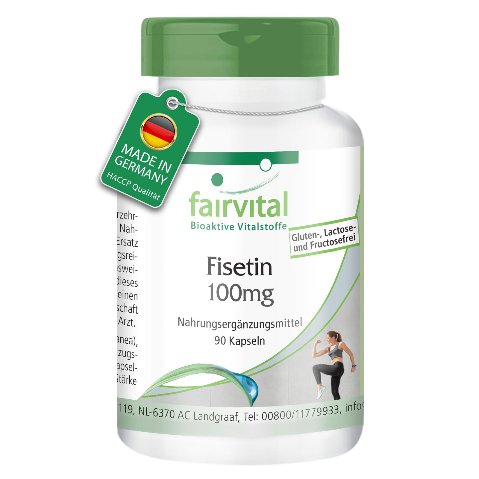 Fisetin 100mg from Fairvital Fisetin is a naturally occurring polyphenol and flavonoid found in various fruits and vegetables. Fisetin belongs to the group of so-called senolytics. - three capsules per day - food supplement with high dosage - 300mg fisetin per daily dose - gluten, fructose and lactose free - without magnesium stearate and silicon dioxide - vegetarian and vegan - made in Germany - origin of raw materials EU and non-EU Contents: 90 capsules Recommended intake: Adults take 3 capsules per day with plenty of water during a meal. Three capsules contain Fisetin 300mg L-leucine 180mg INGREDIENTS Fisetin (stem Rhus succedanea), filler microcrystalline cellulose, coating agent hydroxypropyl methylcellulose (capsule shell), L-Leucine, anti-caking agent modified starch SAFETY WARNING Use during pregnancy and breastfeeding after consultation with a doctor. See more✓ MICROBIAL PURITY Made in Germany: in accordance with HACCP. Origin of raw materials from EU and non-EU countries. ✓ 30 DAY SUPPLY: Long shelf life in an airtight container. 90 Fisetin capsules convenient to take - more effective than powder and liquid! In a lightweight tin with freshness seal and practical DOSING LID, ideal for travelling!. ✓ BIOAVAILABLE WITHOUT: gluten, fructose, lactose, magnesium stearate, silicon dioxide, preservatives, soy, yeast, pesticides, fungicides, fertilizers, dyes, stabilizers and genetic engineering (NON-GMO). 100 VEGAN and without harmful additives!. ✓ Fairvital GERMAN QUALITY: Daily dosage: Adults take 3 capsules per day with plenty of water with a meal. 90 capsules! Excellent value for money!. ✓ OF NATURAL VALUE: Fisetin is a naturally occurring polyphenol and flavonoid found in various fruits and vegetables. Fisetine belongs to the group of so-called senolytics.Fairvital Fisetin 100mg - 90 capsules - van Japanse wasboom - op kwaliteit getest en hoog gedoseerd - 100 veganistisch - Made in Germany Fisetin 100mg van Fairvital Fisetin is een natuurlijk voorkomend polyfenol en flavonoïde dat voorkomt in verschillende vruchten en groenten. Fisetin behoort tot de groep van de zogenaamde senolytica. - drie capsules per dag - voedingssupplement met hoge dosering - 300mg fisetine per dagdosering - gluten-, fructose- en lactosevrij - zonder magnesiumstearaat en siliciumdioxide - vegetarisch en veganistisch - vervaardigd in Duitsland - oorsprong van grondstoffen EU en niet-EU Inhoud: 90 capsules Aanbevolen inname: Volwassenen 3 capsules per dag met veel water innemen tijdens de maaltijd. Drie capsules bevatten Fisetin 300mg L-leucine 180mg INGREDIËNTEN Fisetine (stam Rhus succedanea), vulstof microkristallijne cellulose, omhullingsmiddel hydroxypropylmethylcellulose (capsule omhulsel), L-Leucine, antiklontermiddel gemodificeerd zetmeel VEILIGHEIDSWAARSCHUWING Gebruik tijdens zwangerschap en het geven van borstvoeding na overleg met een arts. Meer bekijken✓ MICROBIËLE ZUIVERHEID Gemaakt in Duitsland: in overeenstemming met HACCP. Herkomst van grondstoffen uit EU- en niet-EU-landen. ✓ SUPPLY VAN 30 DAGEN: Lange houdbaarheid in een luchtdicht afgesloten blik. 90 Fisetin capsules handig in te nemen - effectiever dan poeder en vloeistof! In een lichtgewicht blik met versheidszegel en praktische DOSING LID, ideaal voor op reis!. ✓ BIOAVAILABLE ZONDER: gluten, fructose, lactose, magnesiumstearaat, siliciumdioxide, conserveermiddelen, soja, gist, pesticiden, fungiciden, kunstmest, kleurstoffen, stabilisatoren en gentechnologie (NON-GMO). 100 VEGAN en zonder schadelijke toevoegingen!. ✓ Fairvital DUITSE KWALITEIT: Dagdosering: Volwassenen 3 capsules per dag met veel water innemen bij de maaltijd. 90 capsules! Uitstekende prijs-kwaliteitverhouding!. ✓ VAN NATUURLIJKE WAARDE: Fisetine is een natuurlijk voorkomend polyfenol en flavonoïde dat voorkomt in verschillende vruchten en groenten. Fisetine behoort tot de groep van de zogenaamde senolytica.