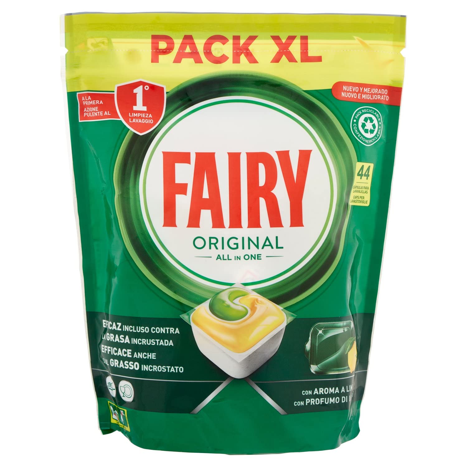 Fairy Lessive Plaquettes Lave-vaisselle Brillant, 44 Capsules, Original Citron, Action Nettoyante Avec Action Brillante 44 unité (Lot de 1)
