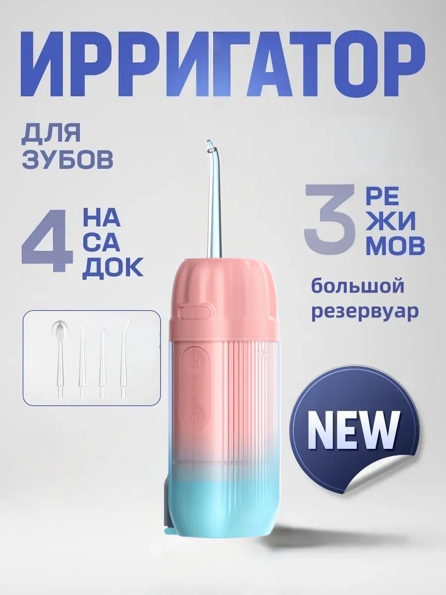 Ирригатор для десен 4 насадки 3 режима большой резервуар