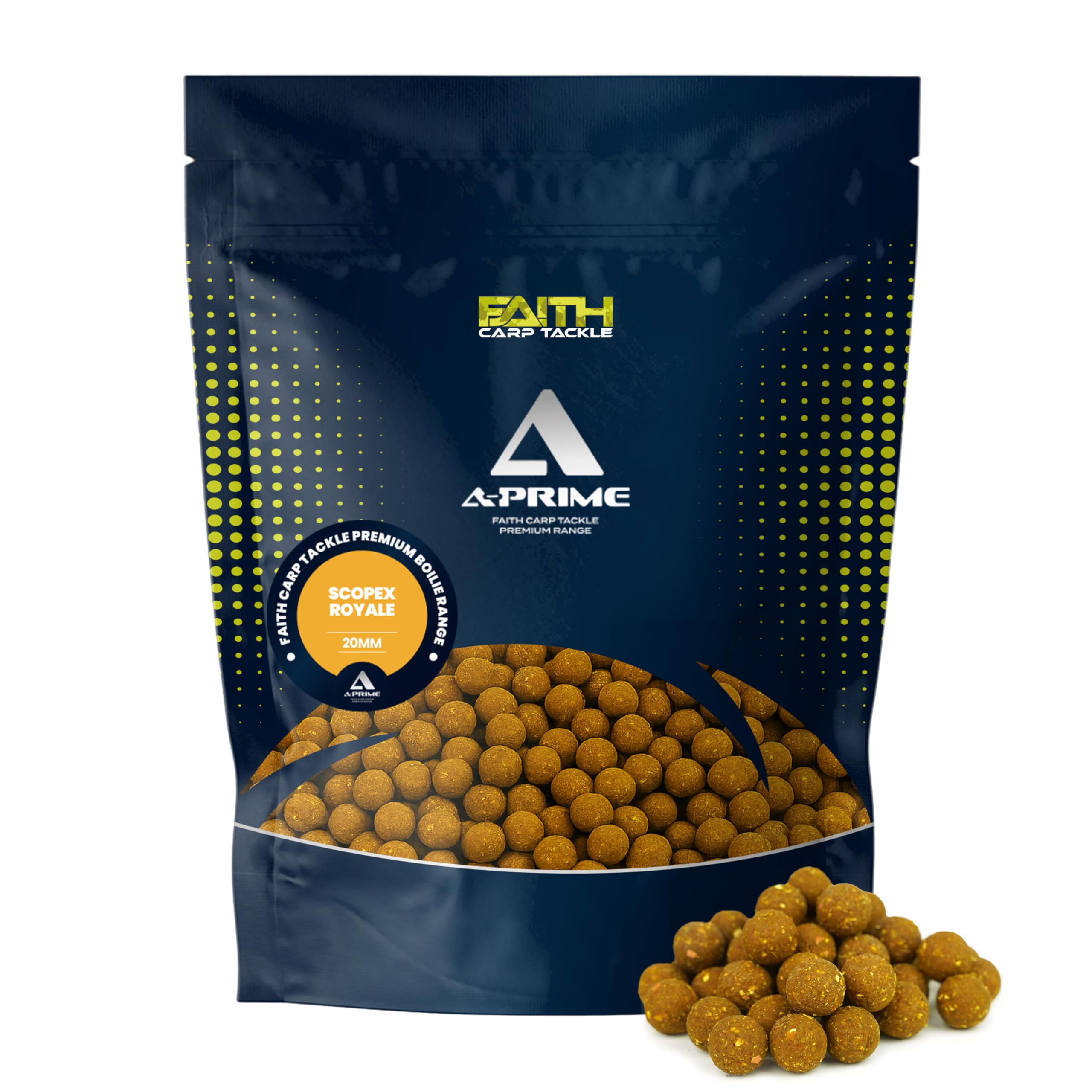 Faith A-Prime Boilies The essence of traditional perfection: high-quality, old-fashioned boilies made with fresh eggs and authentic flavors. We are proud to present Faith's A-Prime boilies, a tribute to the art of boilie making according to the "Old School" principles. We have breathed new life into this ancient craft, using fresh eggs, a characteristic clearly visible in the boilie through the small pieces of eggshell. This authentic approach, combined with the original flavors, ensures that the aroma and appeal of our boilies remain potent even after three years of storage. The A-Prime boilie is built around a HighCarb base mix, designed to deliver rapid attraction. The mix is balanced and airy, allowing attractants to disperse optimally, thus increg effectiveness. Thanks to carefully selected ingredients with a high digestibility rate, fish will continue to feed on the attractant bed as long as they find boilies in that area. This ensures you'll attract and retain fish, even after long feeding sessions. While many other boilie brands opt for cheaper ingredients and manufacturing processes, Faith has chosen to embrace the traditional method. We believe this translates into better catches and less training. Available sizes: 16mm and 20mm. Faith A-Prime Boilies: For anglers who demand the highest quality, based on tradition and the use of the finest ingredients. High-Carb Base Mix Authentic Production Fresh Eggs Long-Lasting Aroma Available in 8 Flavors Strawberry Scopex Monster Crab Scopex Royale Orange Chocolate Fresh Krill Super Fruits (Tutti Frutti) Garlic Black Pepper Banana Pineapple Highlights: Traditional Production Method Highly Digestible Ingredients Long-Lasting Aroma and Flavor Release Available in Popular Sizes for Various Fishing ConditionsFaith A-Prime Bouilie - 5 kg - 16 mm - Scopex RoyaleDESCRIPTION DU PRODUIT Faith A-Prime Bouillettes L'essence de la perfection traditionnelle : bouillettes anciennes de haute qualité avec des œufs frais et des saveurs originales. Nous sommes fiers de vous présenter les bouillettes A-Prime de Faith, un hommage à l'art de la bouillette selon le principe « Old School ». Nous avons insufflé une nouvelle vie à l'ancien métier, en utilisant des œufs frais, une caractéristique qui est clairement visible dans la bouillette à travers les petits morceaux de coquille d'œuf. Cette approche authentique, associée aux saveurs originales, garantit que l'odeur et l'attrait de nos bouillettes restent puissants même après trois ans de stockage. La bouillette A-Prime est construite autour d'un mélange de base HighCarb, conçu pour offrir un attrait rapide. Le mélange est équilibré et aéré, ce qui permet aux attractifs de se propager de manière optimale, ce qui augmente l'efficacité. En raison des ingrédients soigneusement sélectionnés avec un taux de digestibilité élevé, les poissons continuent à se nourrir du lit d'attractifs tant qu'ils trouvent des bouillettes dans cette zone. Cela garantit que vous attirerez et retenez le poisson, même après de longues séances d'alimentation. Alors que de nombreuses autres marques de bouillettes choisissent des ingrédients et des procédés de fabrication moins chers, Faith a choisi d'adopter la méthode traditionnelle. Nous pensons que cela se paie en meilleures prises et moins de dressage. Tailles disponibles : 16 mm et 20 mm. Bouillettes Faith A-Prime : Pour les pêcheurs qui recherchent la meilleure qualité, basée sur la tradition et l'utilisation des meilleurs ingrédients. HighCarb Base Mix Production authentique Œufs frais Parfum longue durée Disponible en 8 saveurs Fraise Scopex Monster Crab Scopex Royale Orange et chocolat Fresh Krill Super Fruits (Tutti Frutti) Garlic Black Pepper Banane Ananas Points forts : Méthode de fabrication traditionnelle Ingrédients hautement digestibles Diffusion durable de parfum et de saveur Disponible dans des tailles populaires pour différentes conditions de pêche