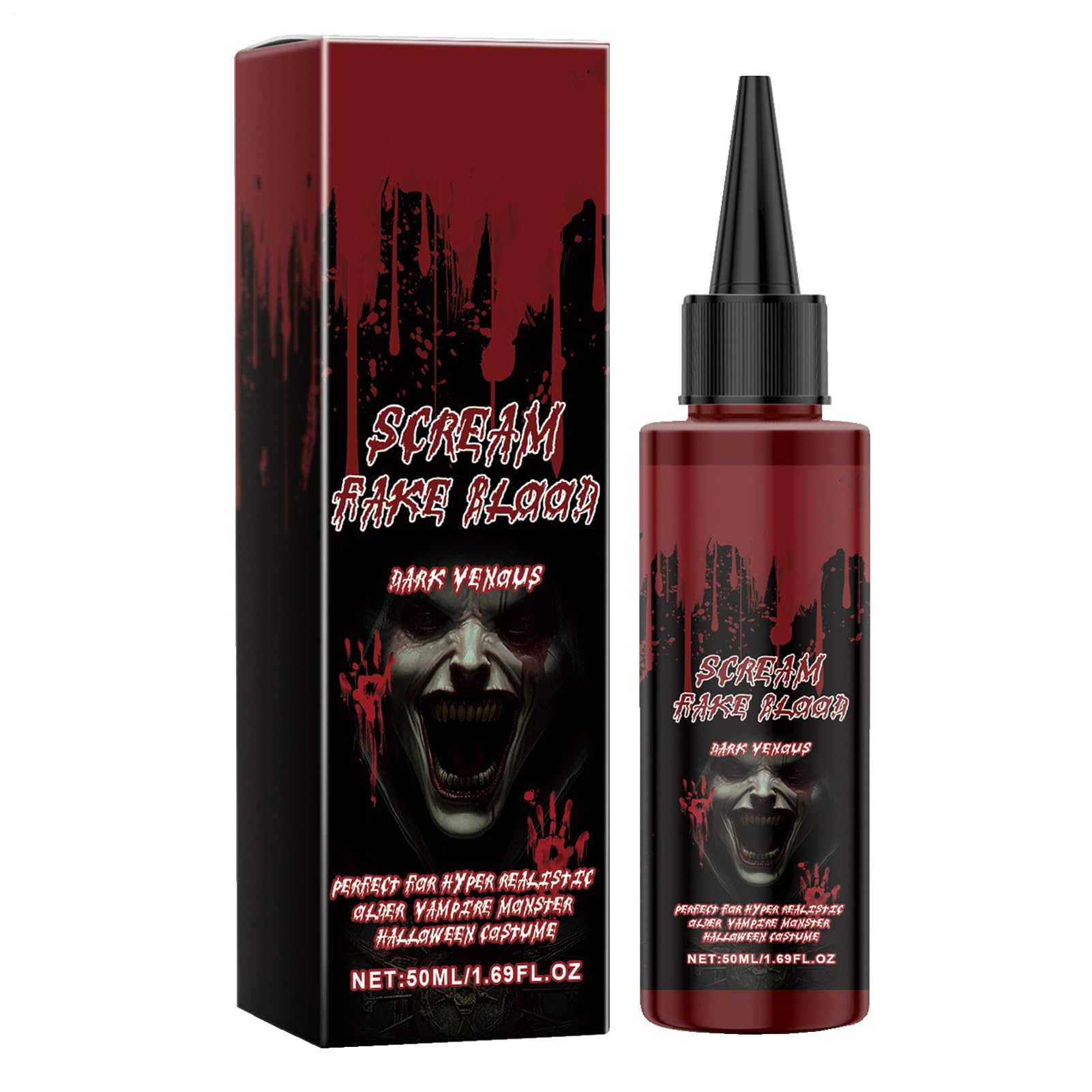 Add a spooky realism to your Halloween activities without worrying about getting it on your skin or clothes. Easy to carry and clean, this product is perfect not only for Halloween parties but also for cosplay or theatrical performances. Budget: Product Name: Fake Blood Product Specifications: 50 ml Product Dimensions: Approximately 3.3 x 12.8 cm Product Features: Ultra-realistic effect, suitable for various scenes, safe and environmentally friendly Applicable Scenes: Movies, dramas, horror-themed parties, Halloween parties, etc. Package Contents: 1 x Fake Blood Notes: Due to lighting and individual monitor settings, the item's color may differ slightly from the picture. Please allow 1-3 cm error due to manual measurement. SAFETY WARNING Not applicableRealistic Simulation: Transform this Halloween into a terrifying creature with our realistic fake blood. Its premium formulation delivers a thick, glossy red liquid that mimics the texture and appearance of real blood for a chillingly lifelike effect. Wide Range of Uses: Versatile fake blood realism for any scene with our multifunctional fake blood applicator. Perfect for film, theater, or themed events, not for Halloween parties. Whether used as a prop or sprayed into the set, achieve stunning results that enhance any setup. Easy Cleanup: Our fake blood lets you enjoy Halloween without worrying about cleanup. With its easy-to-clean formula, you can have fun without leaving lasting stains. Simply carry your costume with this portable fake blood. With its compact packaging, you can effortlessly take it to parties, festivals, and performances, ensuring you never miss a beat. Safe to Use: Light up your Halloween with our harmless fake blood. Don't worry anymore, because it's totally safe for your skin and clothes, so you can create the best W horror show.Faux sang - Faux sang lavable Broting Bloods Peinture pour corps liquide à éclaboussures réalistes Gel rouge coagulé simulé pour costume de cosplay d'Halloween vampire vampire zombieDESCRIPTION DU PRODUIT DESCRIPTION DU PRODUIT Ajoutez un réalisme effrayant à vos activités d'Halloween, sans vous soucier de salir votre peau ou vos vêtements. Facile à transporter et à nettoyer, profitez de ce produit non pas pour les fêtes d'Halloween, mais aussi pour les spectacles de cosplay ou de théâtre. Budget : Nom du produit : faux sang. Spécifications du produit : 50 ml. Dimensions du produit : environ 3,3 x 12,8 cm. Caractéristiques du produit : effet ultra-réaliste, applicable à plusieurs scènes, sûr et respectueux de l'environnement. Scènes applicables: films, spectacles dramatiques, fêtes à thème d'horreur, fêtes d'Halloween, etc. Contenu de la livraison : 1 faux sang. Remarques : En raison de l'éclairage et des paramètres propres à chaque écran, la couleur de l'article peut légèrement différer de celle de la photo. Les mesures étant prises à la main, les tailles indiquées peuvent varier de 1 à 3 cm. AVERTISSEMENT DE SÉCURITÉ Ne s'applique pasSimulation réaliste : transformez cet Halloween en une créature horrible avec notre faux sang réaliste. Sa formulation de qualité supérieure offre un liquide rouge épais et brillant qui imite la texture et l'apparence du sang authentique, pour un effet terriblement réaliste. Large gamme d'utilisations : réalisme de faux sang polyvalent à n'importe quelle scène avec notre application factice multifonctionnelle. Parfait pour le cinéma, le théâtre ou les événements à thème, pas pour les fêtes d'Halloween. Qu'il soit utilisé comme accessoire ou pulvérisé dans le set, obtenez des résultats étonnants qui améliorent n'importe quelle configuration. Nettoyage facile : notre faux sang vous permet de profiter d'Halloween sans vous soucier du nettoyage. Avec sa formule facile à nettoyer, vous pouvez vous amuser sans laisser de taches durables. Transportez simplement votre costume avec ce faux sang facile à transporter. Avec son emballage compact, vous pouvez l'emmener sans effort aux fêtes, festivals et spectacles, en veillant à ne jamais manquer un rythme. Utilisation sûre : allumez tout pour Halloween avec notre faux sang inoffensif. Ne vous inquiétez plus, car il est totalement sûr pour votre peau et vos vêtements, de sorte que vous pouvez créer le meilleur spectacle d'horreur W.