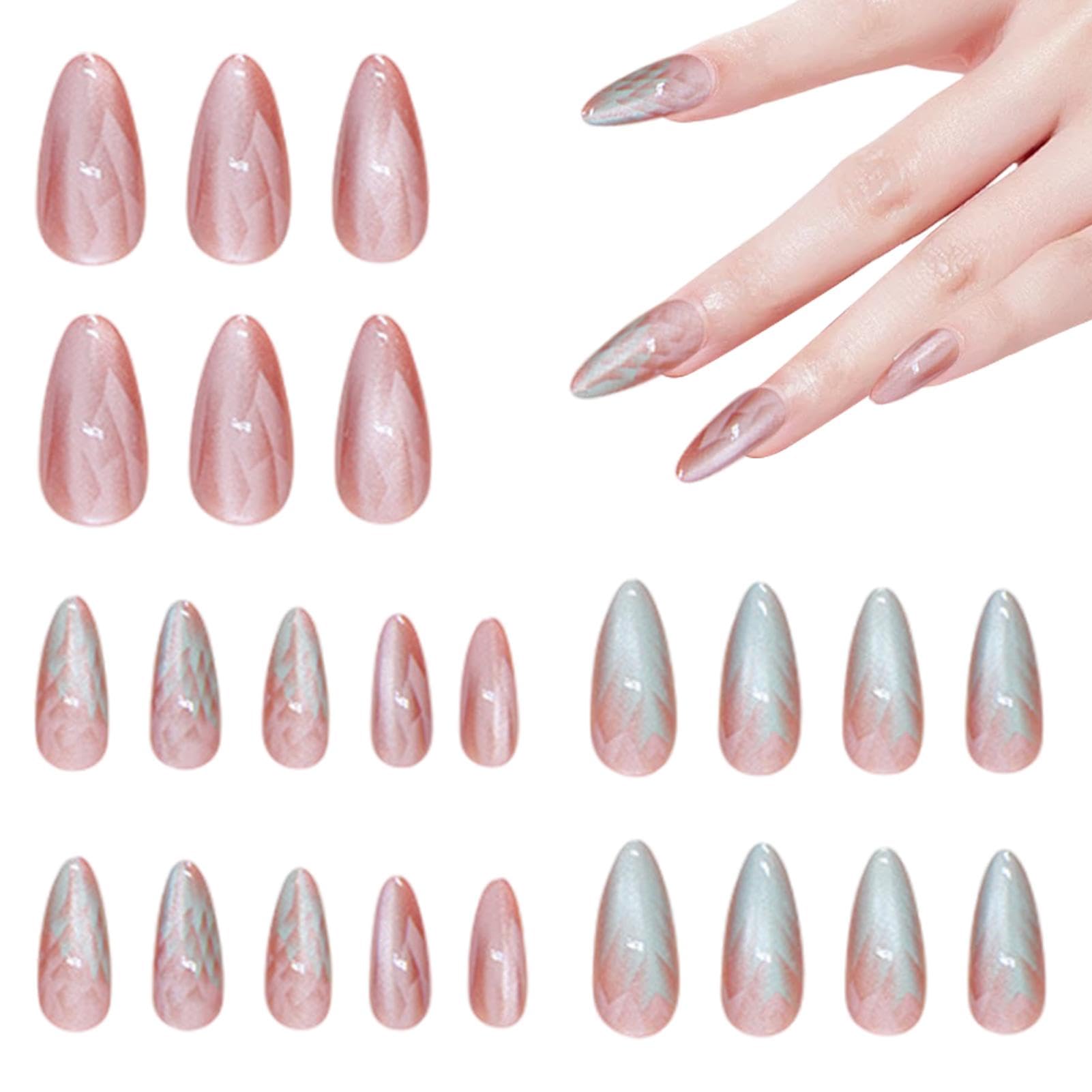 Fake Nails Medium False Nails Ombre | Cat Eye Almond Press On Nails 12 Sizes 24 Artificial Nails For Home Salon Manicure
