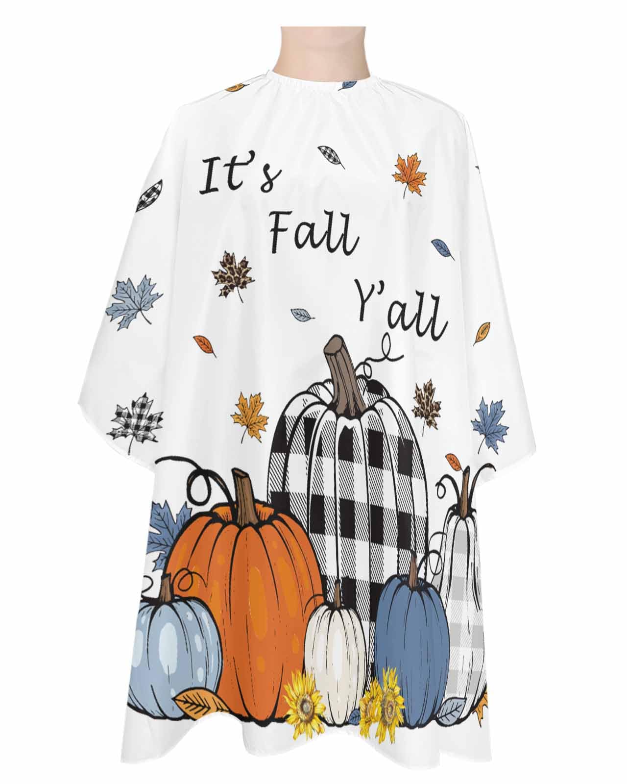 Fall Thanksgiving Pumpkins Barber Cape - Salon Hair Cutting Cape for Women Men Kids Adults Buffalo Plaid Orange Blue Black White Haircut Cape with Adjustable Elastic Neckline Hairdressing Accessories 1 piece 55x63 Inch Blue