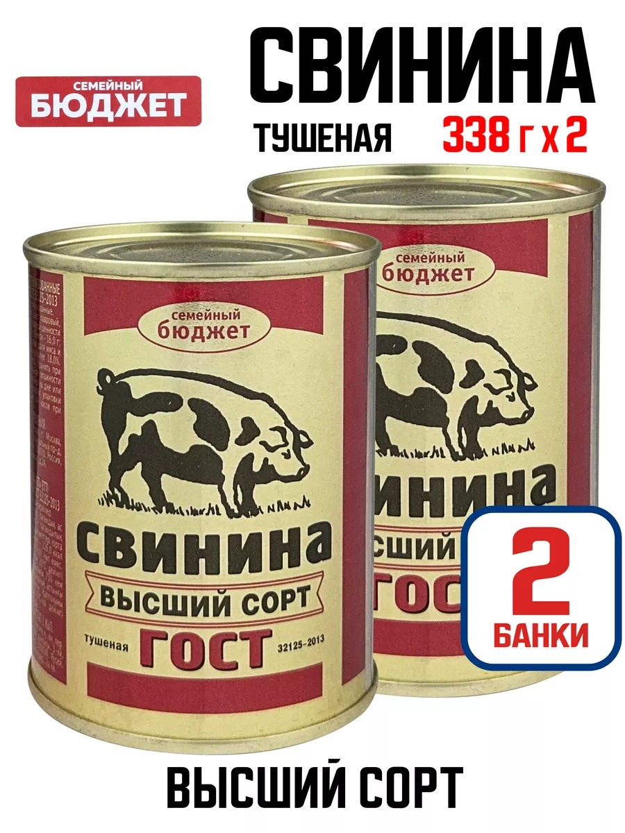 | Комплектация | Свинина тушеная высший сорт, 338 г - 2 шт |
