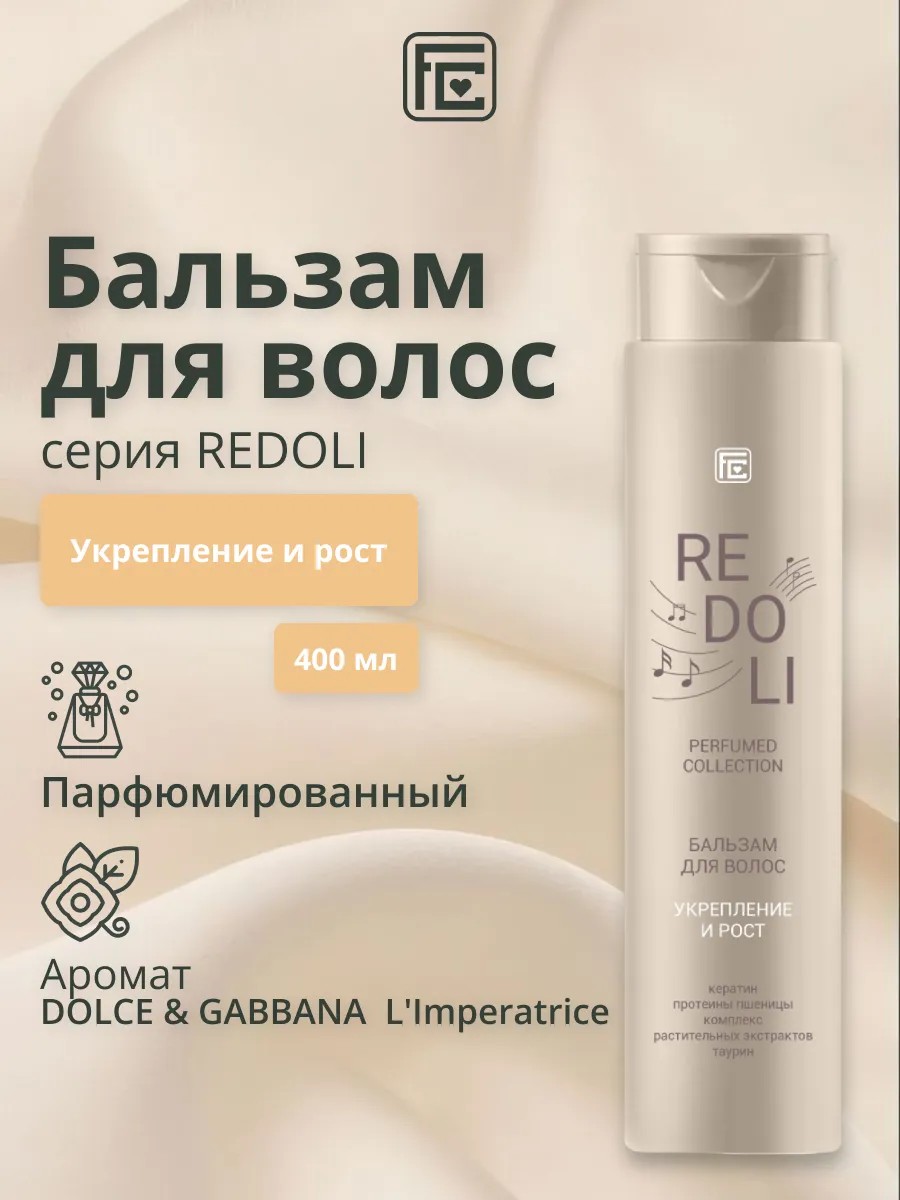Парфюмированный бальзам для волос Укрепление и рост серии REDOLI с протеинами шелка, растительными экстрактами и аргановым маслом специально разработан для сухих волос по длине и на кончиках, а также жирных у корней. Бальзам увлажняет и питает, облегчает расчесывание, помогает вернуть сияние, блеск и дарит волосам потрясающий аромат манго и лотоса. Волосы дольше остаются свежими.