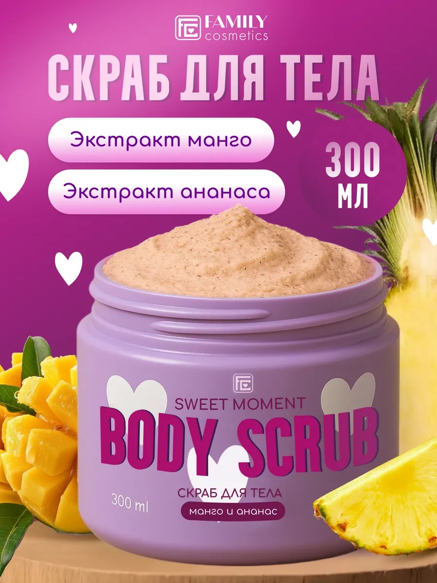 Отшелушивающий скраб для тела и рук манго и ананас от Family Cosmetics бережно удаляет омертвевшие клетки и обновляет кожу, делает её мягкой, гладкой и упругой. Профессиональный скраб на основе натуральных абразивных частиц нежно полирует кожу, избавляя от растяжек, целлюлита и шелушений. Формула включает в себя питательные масла, экстракты и пантенол, благодаря которым средство не пересушивает кожу и придает здоровое сияние после душа. Антицеллюлитный скраб с маслами оказывает лимфодренажный эффект, за счёт которого кожа становится более упругой, а целюлит постепенно уходит. Скраб для тела с маслами против целлюлита тонизирует, выравнивает рельеф кожи и предотвращает появление растяжек на коже и целлюлит. Регулярный механический пилинг в уходе за телом также избавляет от шрамов, пигментных пятен и вросших волос.