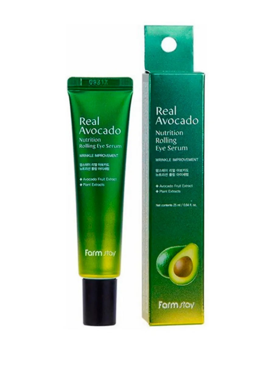 FarmStay Real Avocado Nutrition Rolling Eye Serum Сыворотка-роллер для кожи вокруг глаз с экстрактом авокадо Корея фарм стей 25мл. это идеальный союз природы и современных технологий для заботы о нежной коже вокруг глаз. Уникальная формула сыворотки, обогащенная экстрактом авокадо, обеспечивает глубокое увлажнение и питание, что делает её незаменимым помощником в вашем ежедневном уходе.