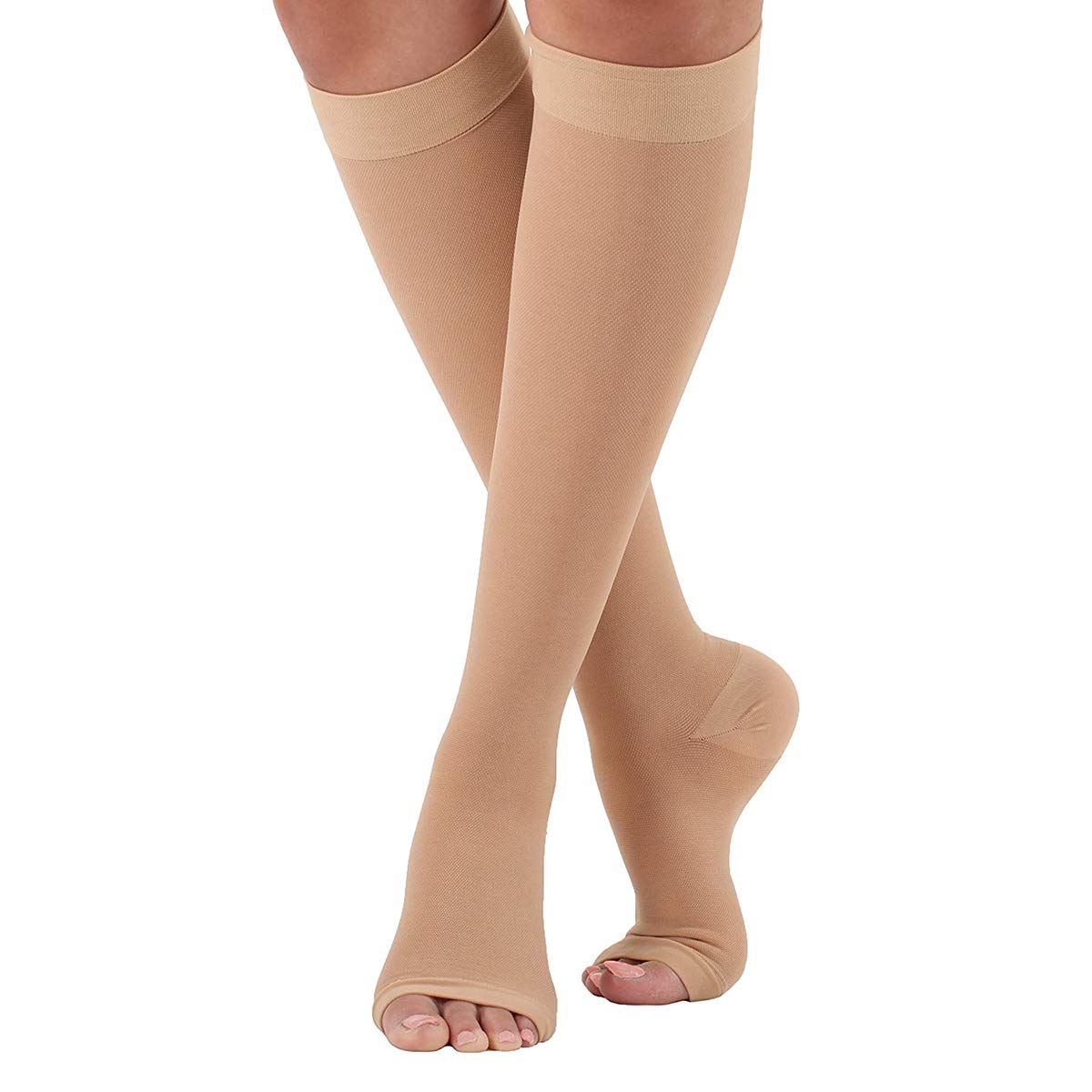 Characteristics: The compression level 23-32 mmHg is ideal for tired, painful legs and moderate varicose veins, moderate edema, after operations and after sclerotherapy and helps to prevent venous ulcers and thrombophlebitis. The medical stockings have a classic style and a smooth, structured knitting tissue that helps to hide unsightly conditions. Color options are basic neutral colors for every occasion, suitable for men and women. The heel zone is also reinforced, which extends the lifespan of the products. Developed to alleviate moderate symptoms in connection with poor blood circulation Graded compression technology provides a compression effect on the leg, which is strongest on the ankle, it will gradually remove heart. Benefit from compression stockings, regardless of whether you suffer from tired aching legs because you spend too much time standing or sitting. Note: The pressure of the stockings is different in different parts. Specification: Degree of pressure: 23-32 mmHg. Material: nylon and spandex. Scope of delivery: 1 pair. Color: skin color,Black. Sizes: S,M,L,XL,XXL A notice: Due to manual measurement, deviations of 1-3 cm are possible. Thank you for your understanding. Scope of delivery: 1 pair of compression stockings.The heel zone is additionally reinforced and thus extends the lifespan of the products.Color options are neutral colors for all occasions, suitable for men and women.The 23-32 mmHg compression level is ideal for tired, painful legs and moderate varicose veins, moderate edema, after operations and after sclerotherapy and helps to prevent venous ulcerations and thrombophlebitis.Benefit from compression stockings whether you suffer from tired aching legs because you spend too much time standing or sitting.Developed to relieve moderate conditions that are associated with poor blood circulation.The graded compression technology provides a compressive effect on the leg, which is strongest on the ankle and then gradually decreases towards the heart.Eigenschaften: Die Kompressionsstufe 23-32 mmHg ist ideal für müde, schmerzende Beine und moderate Krampfadern, moderate Ödeme, nach Operationen und nach Sklerotherapie und hilft venöse Geschwüre und Thrombophlebitis zu verhindern. Die medizinischen Strümpfe verfügen über einen klassischen Stil und ein glattes, strukturiertes Strickgewebe, das hilft, unschöne Bedingungen zu kaschieren. Farboptionen sind grundlegende neutrale Farben für jeden Anlass, geeignet für Männer und Frauen. Die Fersenzone wird zusätzlich verstärkt, was die Lebensdauer der Produkte verlängert. Entwickelt, um moderate Beschwerden im Zusammenhang mit schlechter Durchblutung zu lindern abgestufte Kompressionstechnologie liefert eine Kompressionswirkung auf das Bein, die am Knöchel am stärksten ist, dann wird es allmählich zum Herz abnehmen. Profitieren Sie von Kompressionsstrümpfen, egal ob Sie unter müden schmerzenden Beinen leiden, weil Sie zu viel Zeit im Stehen oder Sitzen verbringen. Hinweis: Der Druck der Strümpfe ist unterschiedlich in verschiedenen Teilen. Spezifikation: Druckgrad: 23-32 mmHg. Material: Nylon und Spandex. Lieferumfang: 1 Paar. Farbe: Hautfarbe,Schwarz. Größen: S,M,L,XL,XXL Hinweis: Aufgrund manueller Messung sind Abweichungen von 1-3 cm möglich. Vielen Dank für Ihr Verständnis. Lieferumfang: 1 Paar Kompressionsstrümpfe.Die Fersenzone wird zusätzlich verstärkt und verlängert so die Lebensdauer der Produkte. Farboptionen sind neutrale Farben für alle Anlässe, geeignet für Männer und Frauen. Die 23-32 mmHg Kompressionsstufe ist ideal für müde, schmerzende Beine und moderate Krampfadern, moderate Ödeme, nach Operationen und nach Sklerotherapie und hilft venöse Ulzerationen und Thrombophlebitis zu verhindern. Profitieren Sie von Kompressionsstrümpfen, ob Sie unter müden schmerzenden Beinen leiden, weil Sie zu viel Zeit im Stehen oder Sitzen verbringen. Entwickelt, um moderate Bedingungen zu lindern, die mit schlechter Durchblutung verbunden sind. Die abgestufte Kompressionstechnologie liefert eine kompressive Wirkung auf das Bein, das am Knöchel am stärksten ist und dann allmählich in Richtung Herz abnimmt.Famkit Kompressionsstrümpfe, 23–32 mmHg, offener Zehenbereich, für Krampfadern, Nylon Spandex - - Small