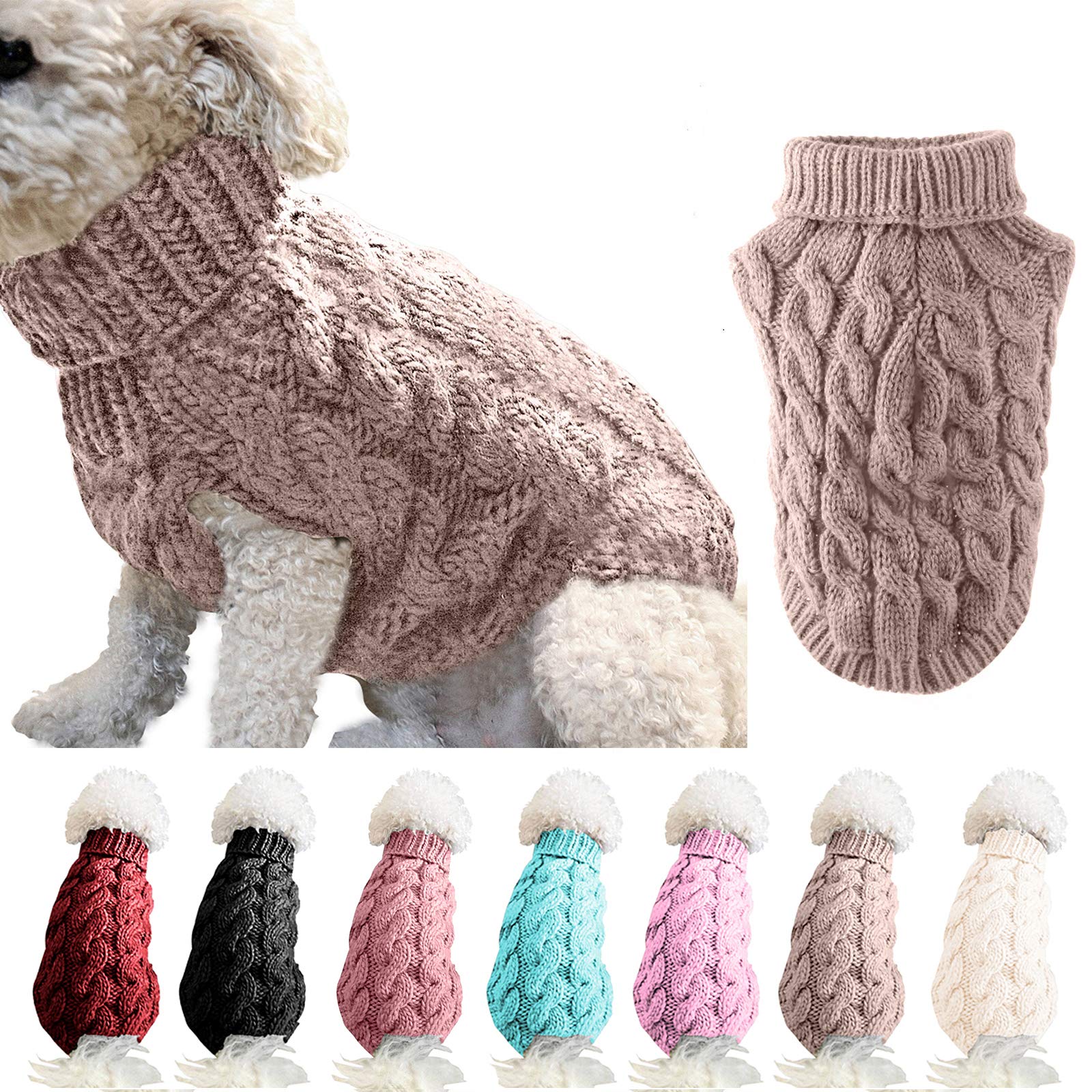 Famkit Pet Dog roll collar sweater with turtleneck sweater Pet Dog Clothing Outwear Fashion Warm Pullover Knitwear (please select a larger size according to the size table) XL (Fit for 11-13.2lb) Khaki