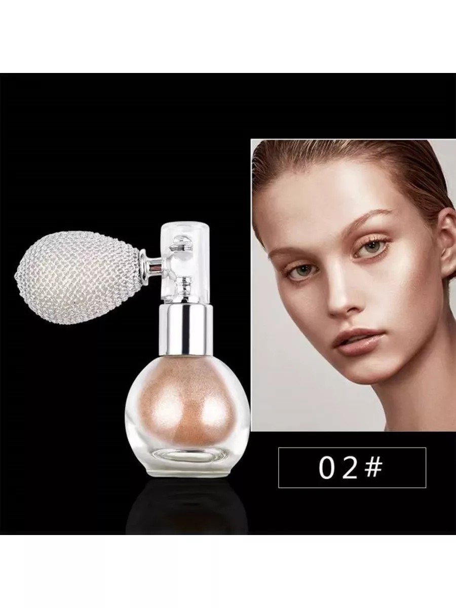 Рассыпчатый хайлайтер для лица и тела с эффектом мерцания в стильном флаконе, в 4 цветах: жемчужно-белый, жемчужно-розовый, серебристый и песочно-золотистый. Инновационные пигменты и нанесение хайлайтера посредством пульверизатора позволяют создать блеск с 3D-эффектом. Так же можно растушевать хайлайтер на коже кистью до желаемой плотности. Плотность нанесения можно варьировать путем приближения или удаления распылителя относительно желаемого места нанесения продукта. С помощью хайлайтера Вы сможете корректировать форму и рельеф лица.