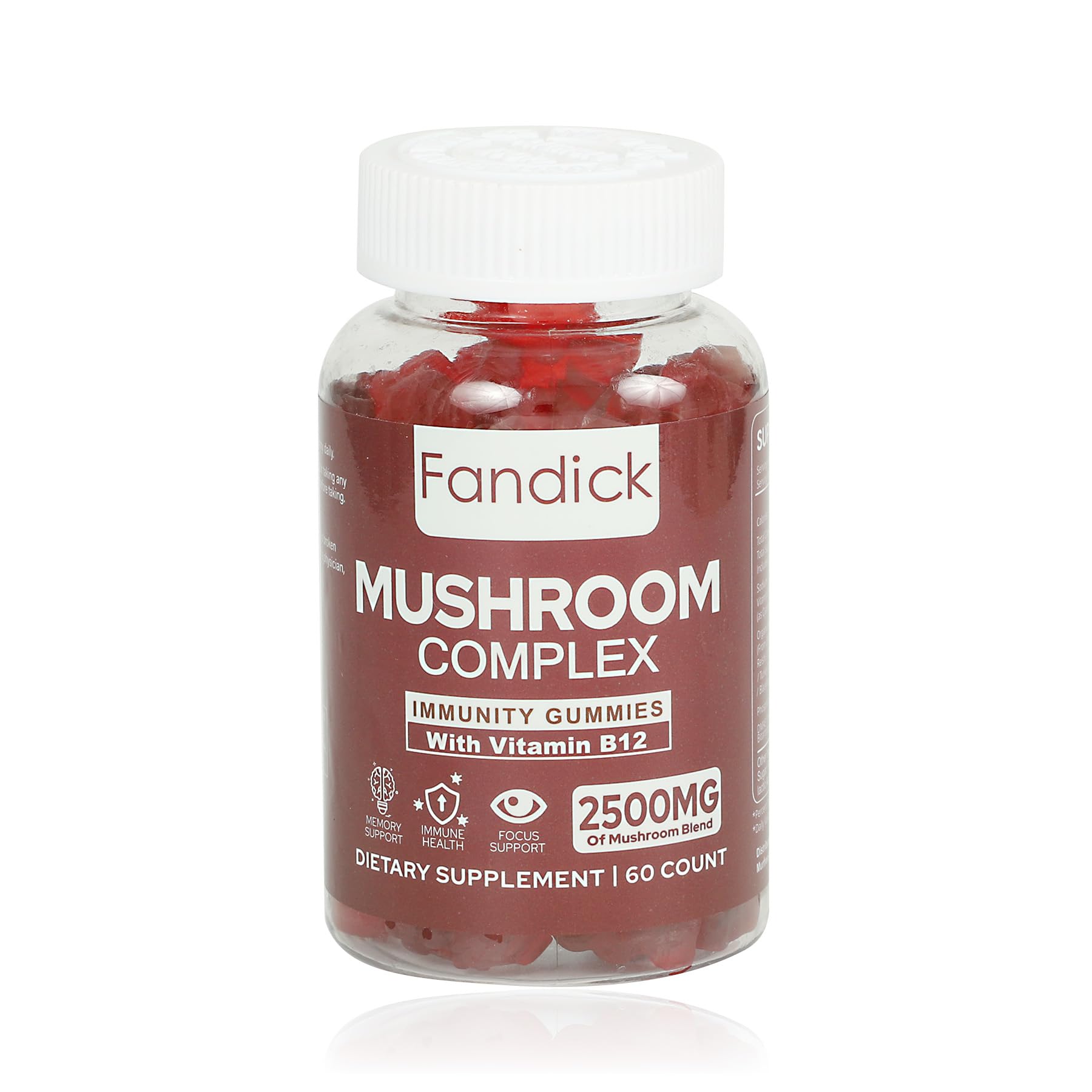 FANDICK Premium Organic Mushroom Complex Blend with Reishi Cordyceps Lion's Mane Chaga Maitake Turkey Tail Agaricus Blazei Oyster Black Fungus Shiitake DMAE 50mg Gummies 30 Days