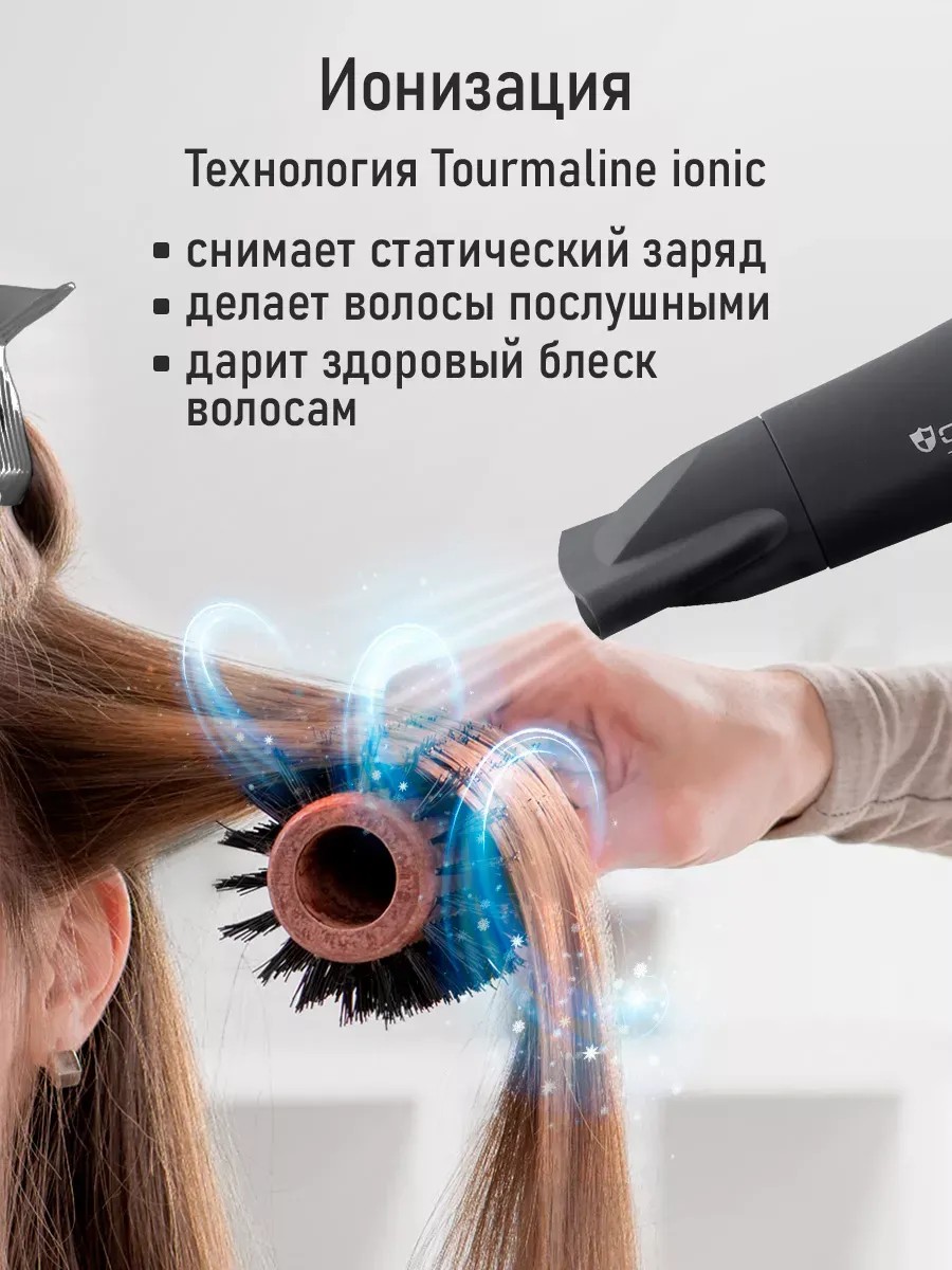 Мощный фен для волос профессиональный с ионизацией, 2600 Вт, АС мотор, технология ТУРМАЛИН ИОН, 2 режима мощности, 3 температурных режима (холодный, теплый, горячий), режим 'холодный воздух', 2 концентраторa, насадка-диффузор, автоотключение при перегреве, петелька для подвешивания, длина шнура 2.7м. Мощный фен профессионального уровня с AC мотором выполнен из высококачественного термостойкого пластика. Имеет два режима мощности для выбора оптимального воздушного потока, три температурных режима (холодный, теплый, горячий воздух). Технология tourmaline ionic образует отрицательно заряженные ионы, снимает статический заряд с волос, делает их послушными и блестящими. Удобный переключатель мощности воздушного потока имеет два положения: для бережной укладки или интенсивной сушки волос. 2 концентратора для укладки волос позволят точнее направлять воздушный поток, а насадка-диффузор придаст волосам дополнительный объём и обеспечит бережную сушку. Удобная петелька для подвешивания позволит хранить фен всегда под рукой. Полную безопасность при использовании фена обеспечивает функция автоматического отключения при перегреве. Бытовая техника для дома фены ion и приборы для укладки волос. Удобный гаджет для дома, фен для парикмахеров. Прибор с насадками для дачи, мощный фен ионный. Девайсы для дома для укладки и объема вы всегда найдете в категории красота и здоровье. Техника для дома красит ваш дом или квартиру! Прибор для укладки компактный, удобный для хранения и использования в качестве дорожного. Стайлер для волос не занимает много места и несомненно впишется в любой интерьер. Идеальное решение для бассейна, компактный подходит в Дорогу и на Дачу, незаменим для Красоты и Здоровья, для кудрявых волос! Маленький подойдет для мужчин и для женщин, а также для детей в бассейн, для спортзала.
