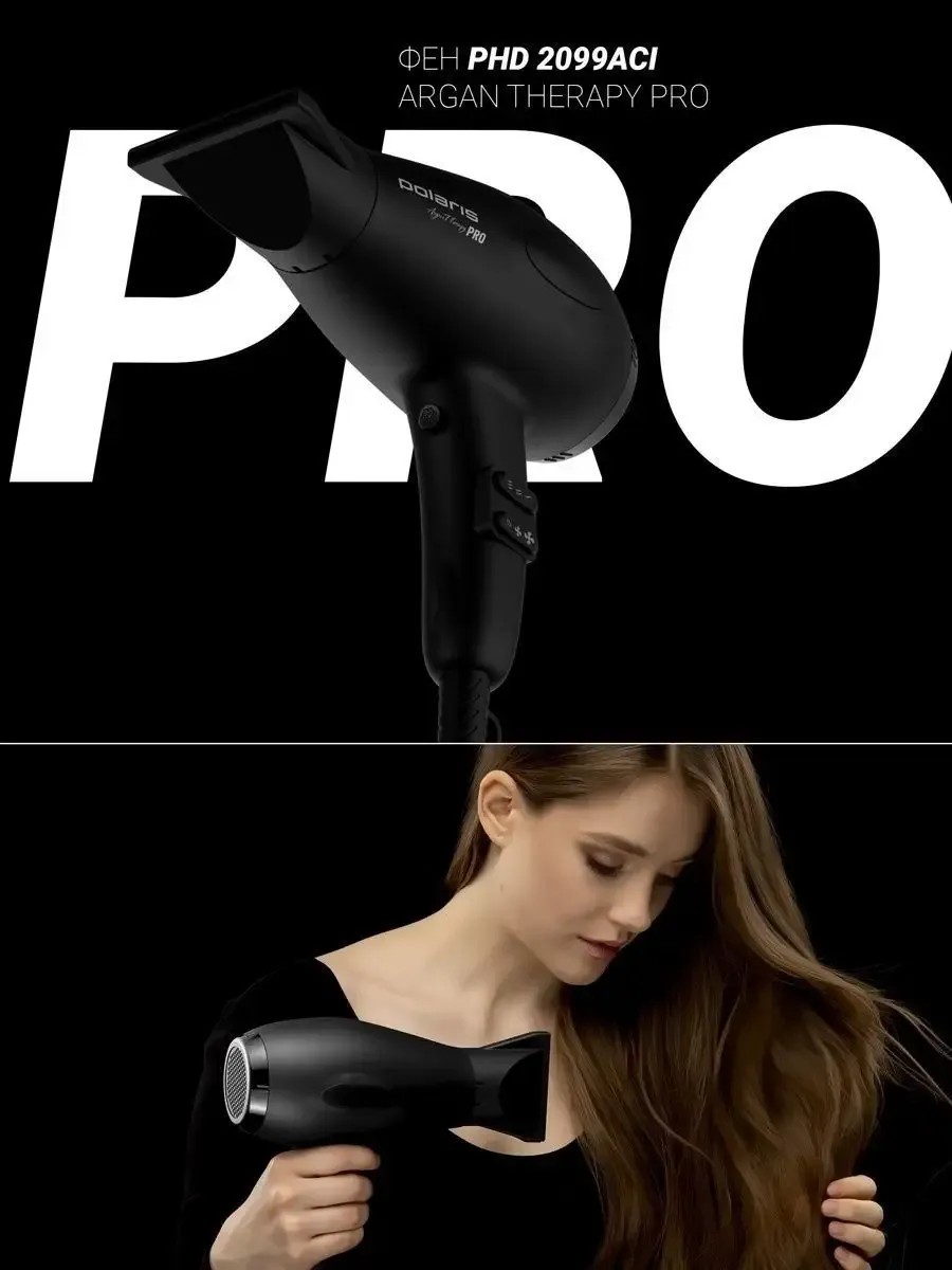 The PHD 2099ACi Argan Therapy PRO professional hair dryer is designed for quick and gentle drying. It's ergonomic and lightweight (565 g without cord), and features two concentrator attachments (9 and 6 mm) that create a targeted airflow for styling individual strands. A built-in ionizer eliminates static electricity, adds shine, and prevents breakage. This hair dryer is equipped with a professional 2000-watt AC motor. Hair dryers with this motor last longer and are less prone to "burnout" thanks to automatic shut-off in case of overheating. Three temperature and two speed settings allow you to choose the perfect drying conditions for any hair type. A cool shot setting is also included for setting your style. Ease of use is also achieved with an extended 3-meter cord, Soft Touch coating, and a removable air intake grille for easy cleaning. This compact hair dryer with improved performance will give your hair salon-quality care at home.