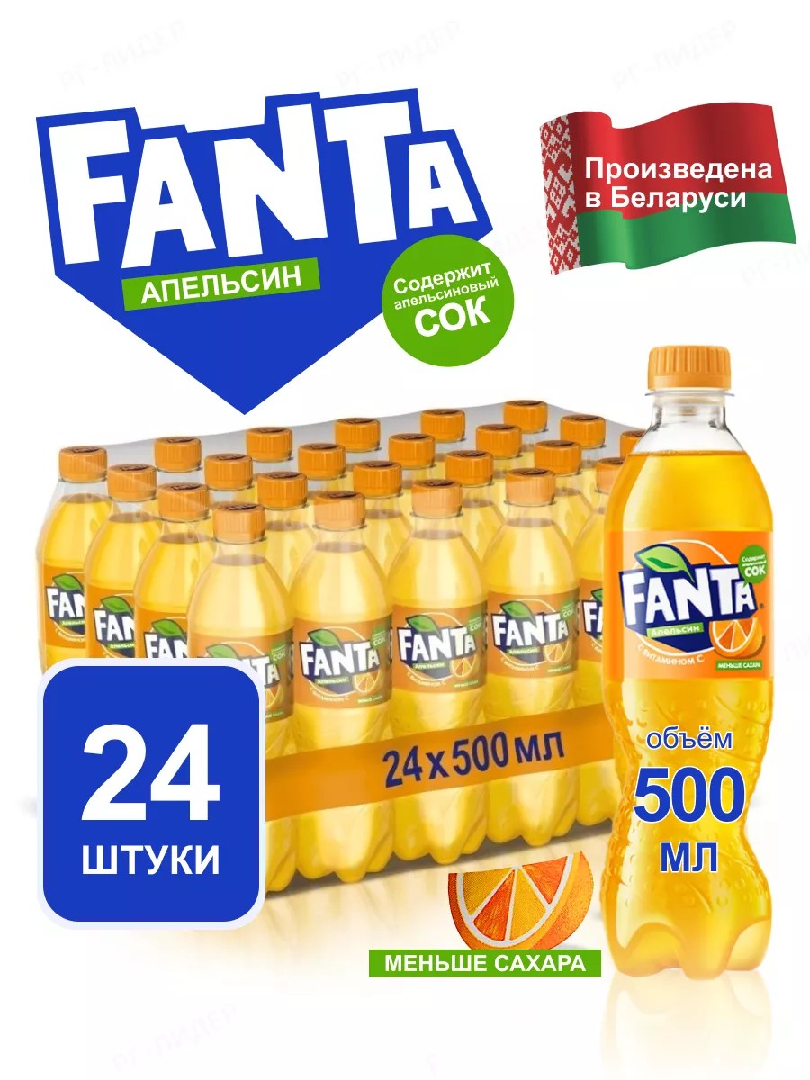| Комплектация | Фанта Orange 24 бутылки по 0,5 литра; Fanta Апельсин 24 бутылки по 0,5 литра |