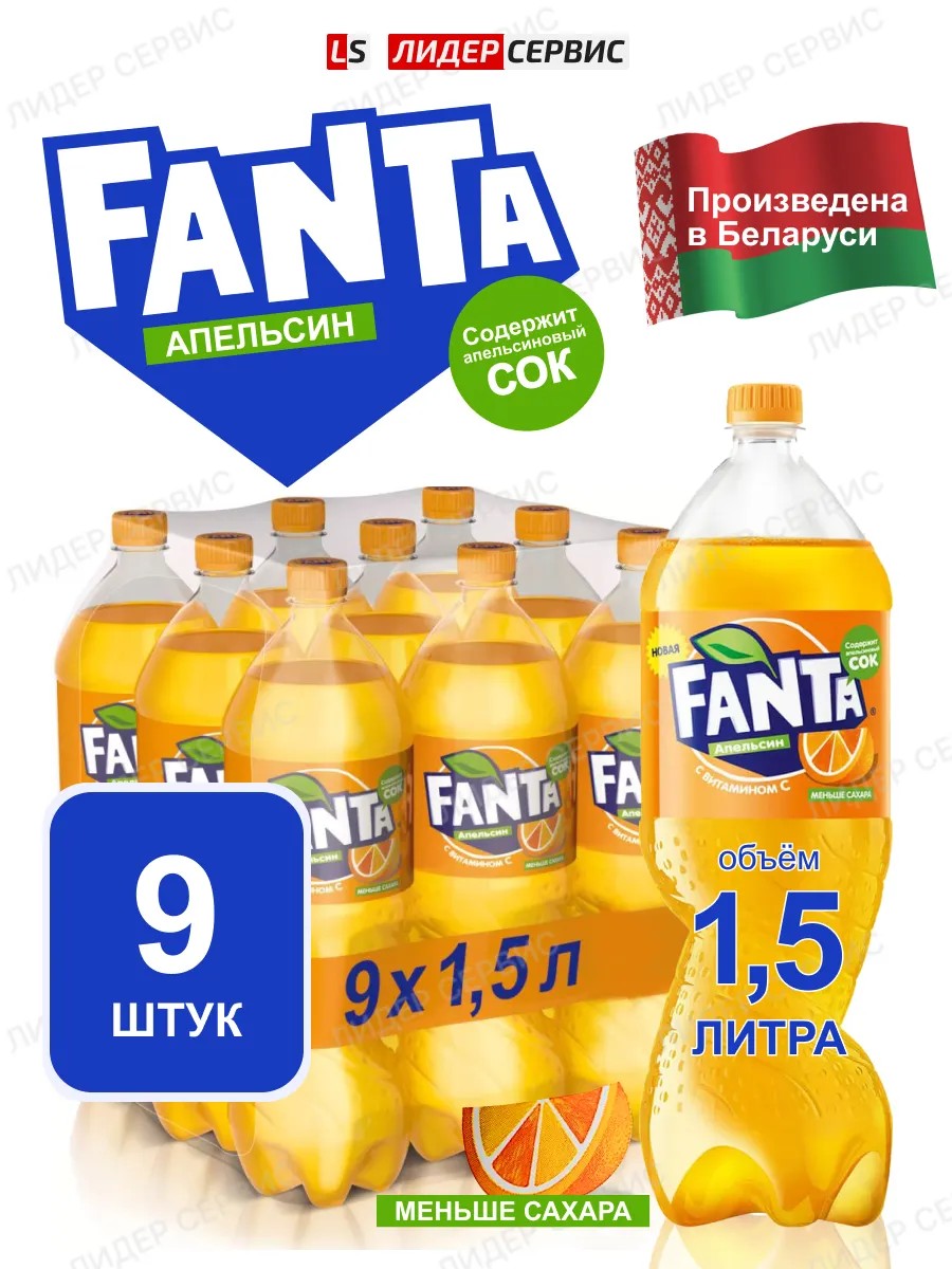 | Комплектация | Фанта Orange 9 бутылок по 1.5 литра; Fanta Апельсин 9 бутылок по 1.5 литра |