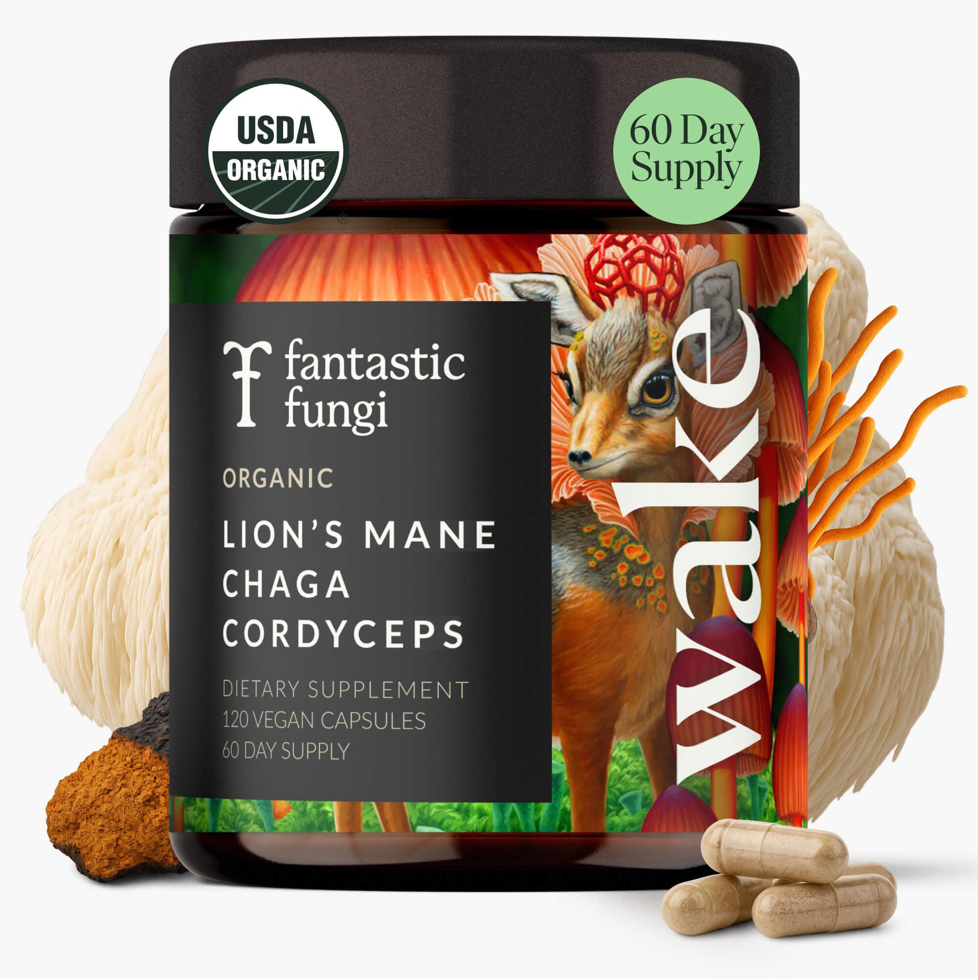 Fantastic Fungi Lions Mane Mushroom Cordyceps Mushroom & Chaga Supplement - Focus Energy & Brain Support Adaptogenic Capsules - 100% USDA Organic Complex Vegan 120 Capsules (2-Month Supply)