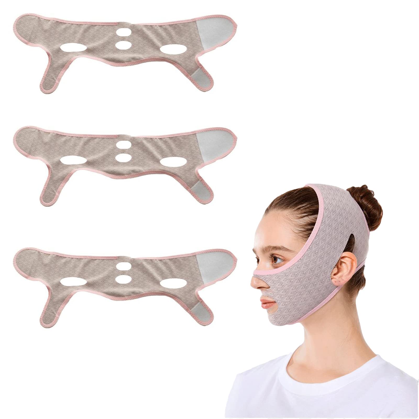 Our V Line Beauty Sleep Mask is the ultimate solution for a slimmer, more youthful face. Designed with a chin strap to tighten and lift sagging skin, this mask is highly effective at reducing double chins while contouring and firming the face for a more defined look. Made of high-quality breathable fabric, our mask is both elastic and firm, fitting different facial contours. The ergonomic design adapts perfectly to the contours of your face, with a foldable ring shape that suits all face shapes. The mask is adjustable to the desired intensity, making it perfect for use while reading, sleeping, watching TV or doing housework. The lightweight and portable design makes it easy to use at home, office or travel. We recommend that you start adjusting from half an hour before the first use, and after adjustment you can use it for 2-8 hours a day, depending on your personal situation. Use less time if you feel unwell. After you form a rule, you must continue to use it. Please note that it is recommended to purchase more than 2 sets for replacement and replacement, which can extend the service life of the product. Also, those with oily skin and those who sweat easily should clean the face mask before and after wearing it to keep it clean.Easy to Use and Portable: The mask is adjustable to your desired intensity, making it perfect for use while reading, sleeping, watching TV or doing housework. The lightweight and portable design makes it easy to use at home, office or travel. Ergonomic Design: Our beauty sleep mask has an ergonomic design that perfectly fits the contours of your face, with a foldable ring shape, suitable for all face shapes. Double Chin Reducer: Our mask is highly effective at reducing double chins and, when used regularly, helps contour and firm the face for a more defined look. Breathable and Comfortable: Made of high-quality breathable fabric, this mask is both elastic and firm, closely adapts to different facial contours. Achieve a slimmer face: Our V-line beauty sleeping mask is specially designed to tighten and lift sagging skin, giving you a slimmer and more youthful face.V Line Beauty Slaapmasker - Gezichtsmasker voor beeldhouwen en liften, kinriem voor dubbele kinreductie, V-lijn vormgeven en contouren, ademend en comfortabel (3 stuks) 3 stuks. Ons V Line Beauty Sleep Mask is de ultieme oplossing voor een slanker, jeugdiger gezicht. Ontworpen met een kinriem om slappe huid strakker te maken en op te tillen, is dit masker zeer effectief in het verminderen van dubbele kin, terwijl het gezicht contouren en verstevigt voor een meer gedefinieerde look. Ons masker is gemaakt van hoogwaardige ademende stof en is zowel elastisch als stevig, passend bij verschillende gezichtscontouren. Het ergonomische ontwerp past zich perfect aan de contouren van je gezicht aan, met een opvouwbare ringvorm die geschikt is voor alle gezichtsvormen. Het masker is instelbaar op de gewenste intensiteit, waardoor het perfect is voor gebruik tijdens het lezen, slapen, tv kijken of huishoudelijk werk. Het lichtgewicht en draagbare ontwerp maakt het gemakkelijk om thuis, op kantoor of op reis te gebruiken. We raden aan om te beginnen met het aanpassen vanaf een half uur voor het eerste gebruik, en na aanpassing kun je het 2-8 uur per dag gebruiken, afhankelijk van je persoonlijke situatie. Gebruik minder tijd als u zich onwel voelt. Nadat u een regel hebt gevormd, moet u deze blijven gebruiken. Houd er rekening mee dat het wordt aanbevolen om meer dan 2 sets te kopen voor vervanging en vervanging, wat de levensduur van het product kan verlengen. Ook degenen met een vette huid en degenen die gemakkelijk zweten, moeten het gezichtsmasker voor en na het dragen reinigen om het schoon te houden.Eenvoudig te gebruiken en draagbaar: het masker is instelbaar op de gewenste intensiteit, waardoor het perfect is voor gebruik tijdens het lezen, slapen, tv kijken of huishoudelijk werk. Het lichtgewicht en draagbare ontwerp maakt het gemakkelijk om thuis, op kantoor of op reis te gebruiken. Ergonomisch design: ons beauty-slaapmasker heeft een ergonomisch design, dat perfect bij de contouren van je gezicht past, met een opvouwbare ringvorm, geschikt voor alle gezichtsvormen. Dubbele kinverkleiner: ons masker is zeer effectief in het verminderen van dubbele kin en helpt bij regelmatig gebruik het gezicht contouren en verstevigt voor een meer gedefinieerde look. Ademend en comfortabel: gemaakt van hoogwaardige ademende stof, dit masker is zowel elastisch als stevig, past zich nauw aan verschillende gezichtscontouren aan. Bereik een slanker gezicht: ons V-line beauty-slaapmasker is speciaal ontworpen om de slappe huid strakker te maken en op te heffen, waardoor je een slanker en jeugdiger gezicht krijgt.