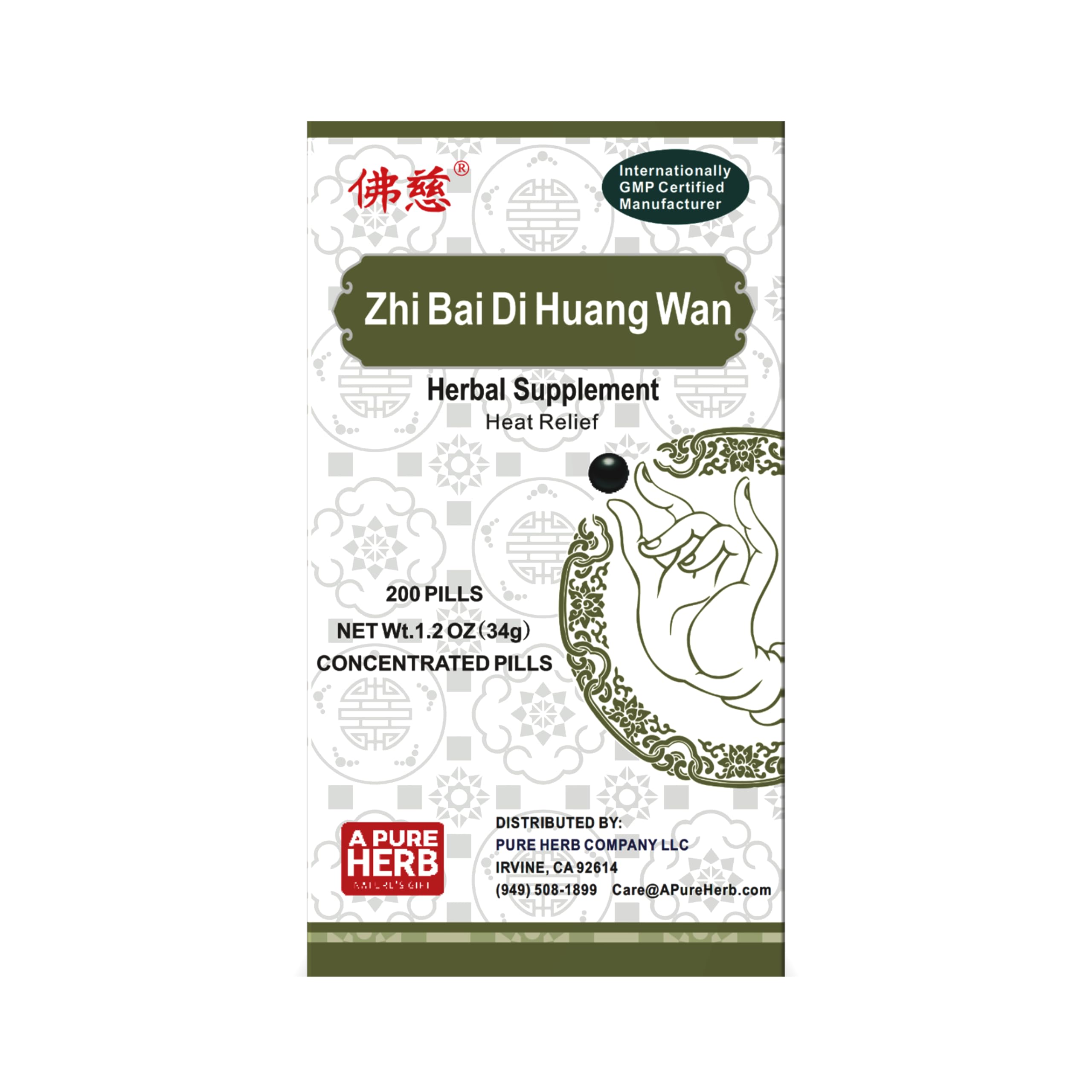 FAR LONG Foci Herbal Zhi Bai Di Huang Wan Herbal Supplement 200 Pills Per Bottle