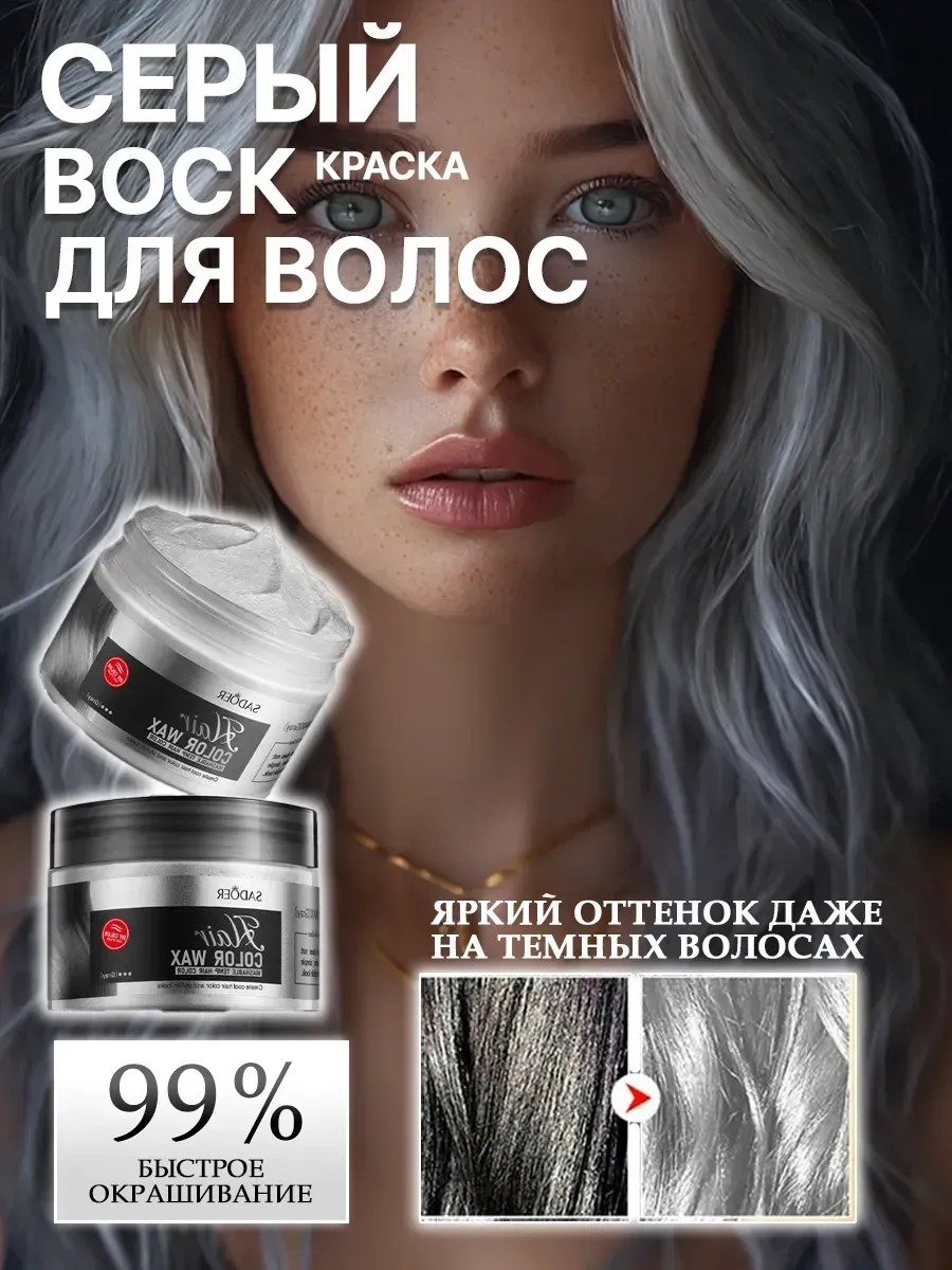 Временная краска и воск для волос — отличное решение для смелых экспериментов. Хотите белый ,серый или седой оттенок? Легко! Смываемая крем-краска или wax подходят даже для одноразовой смены образа. За вечер можно создать яркий акцент, а потом просто смыть водой. Такая краска и воск не повреждают волосы, а значит, вы сможете менять стиль хоть каждый день без вреда для локонов.